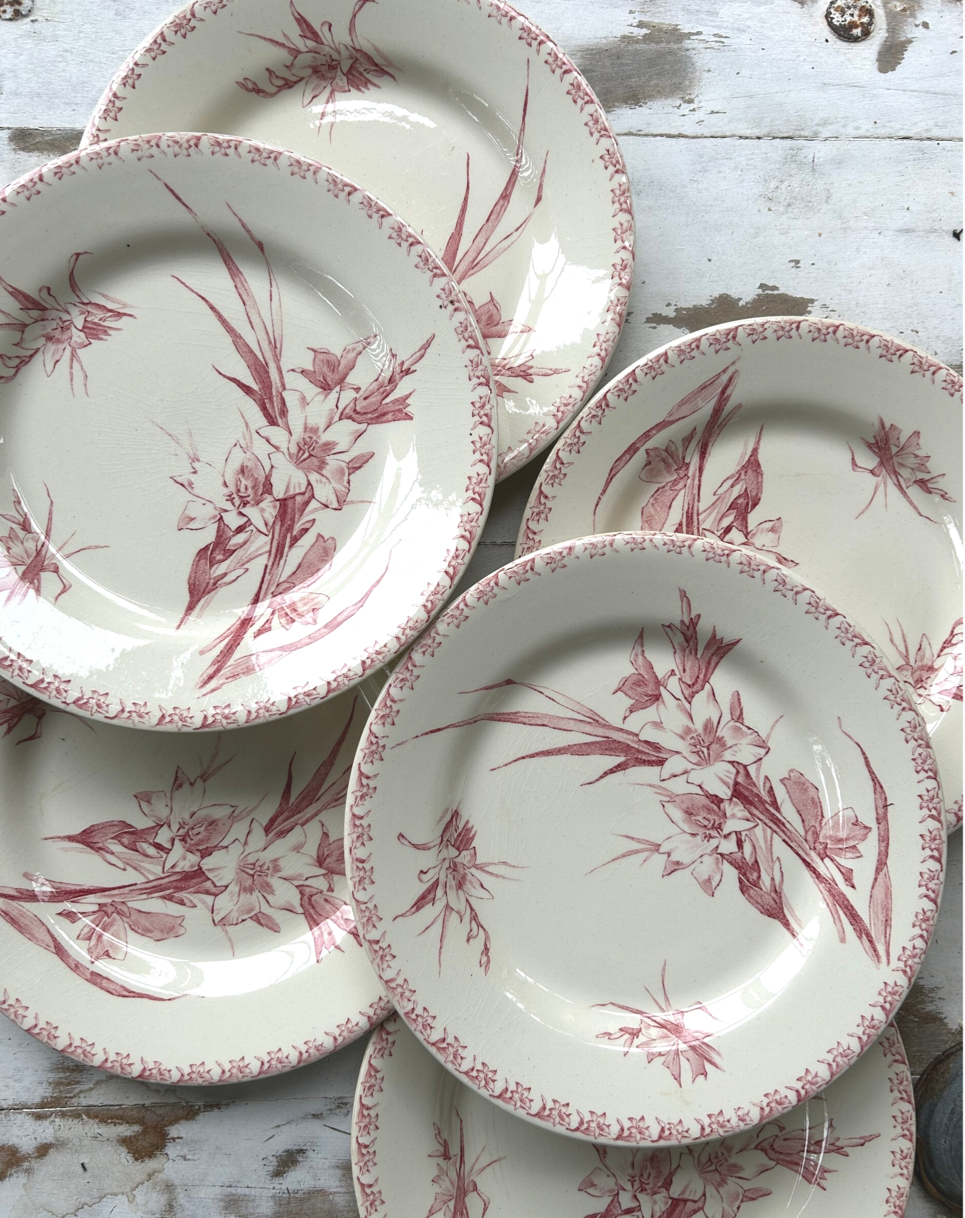 lot de 6 assiettes de la faïencerie de Gien modèle Glaïeul
