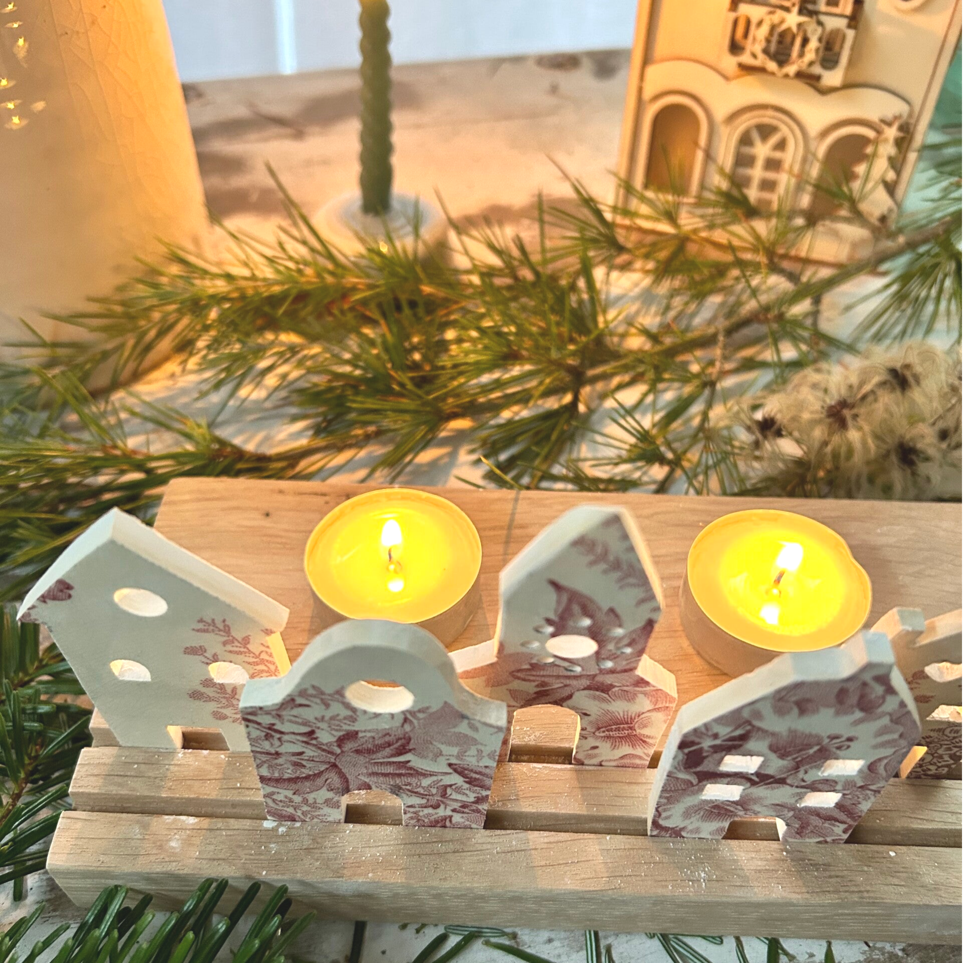 Support en chêne de 20cm x10 cm fabriqué artisanalement, sur lequel vous pouvez déposer bougies ou guirlandes lumineuses