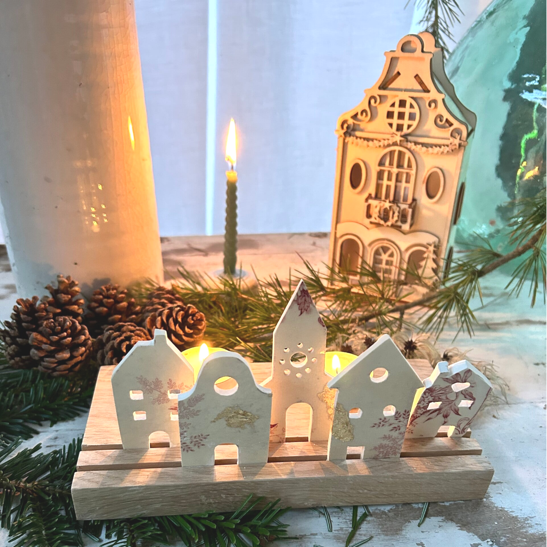 Support en chêne de 20cm x10 cm fabriqué artisanalement, sur lequel vous pouvez déposer bougies ou guirlandes lumineuses