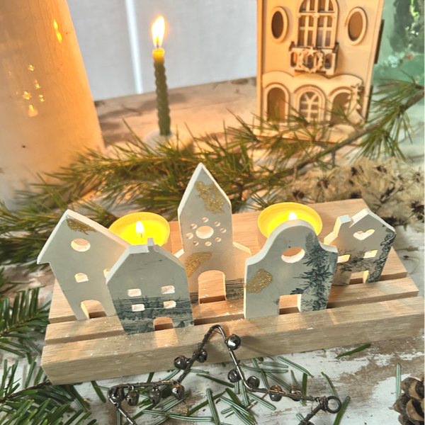 Support en chêne de 20cm x10 cm fabriqué artisanalement, sur lequel vous pouvez déposer bougies ou guirlandes lumineuses