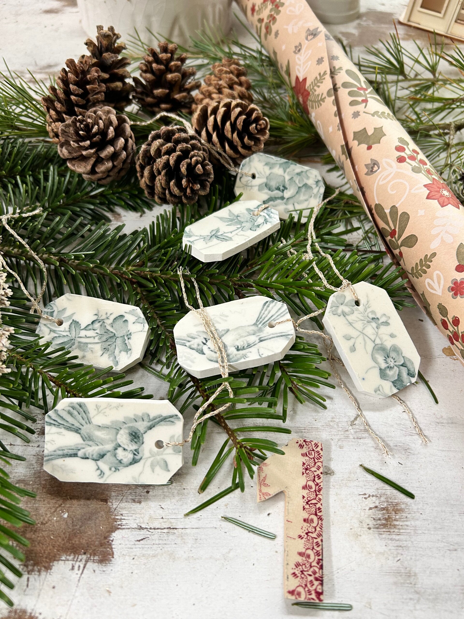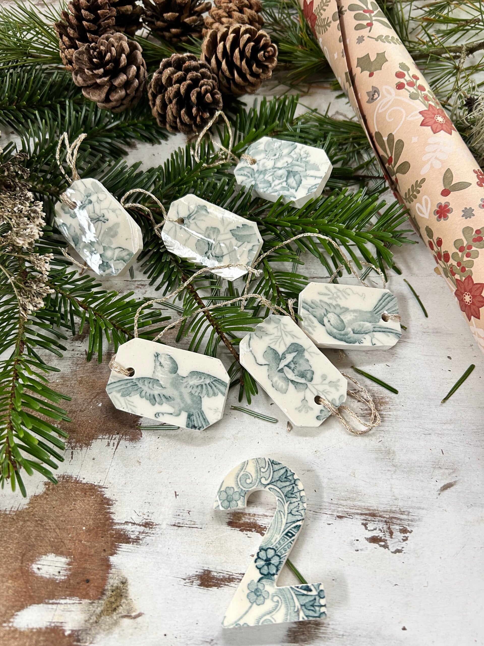 Lot de 6 étiquettes taillées dans une assiette terre de fer Grand Dépôt Marseille modèle Indiana