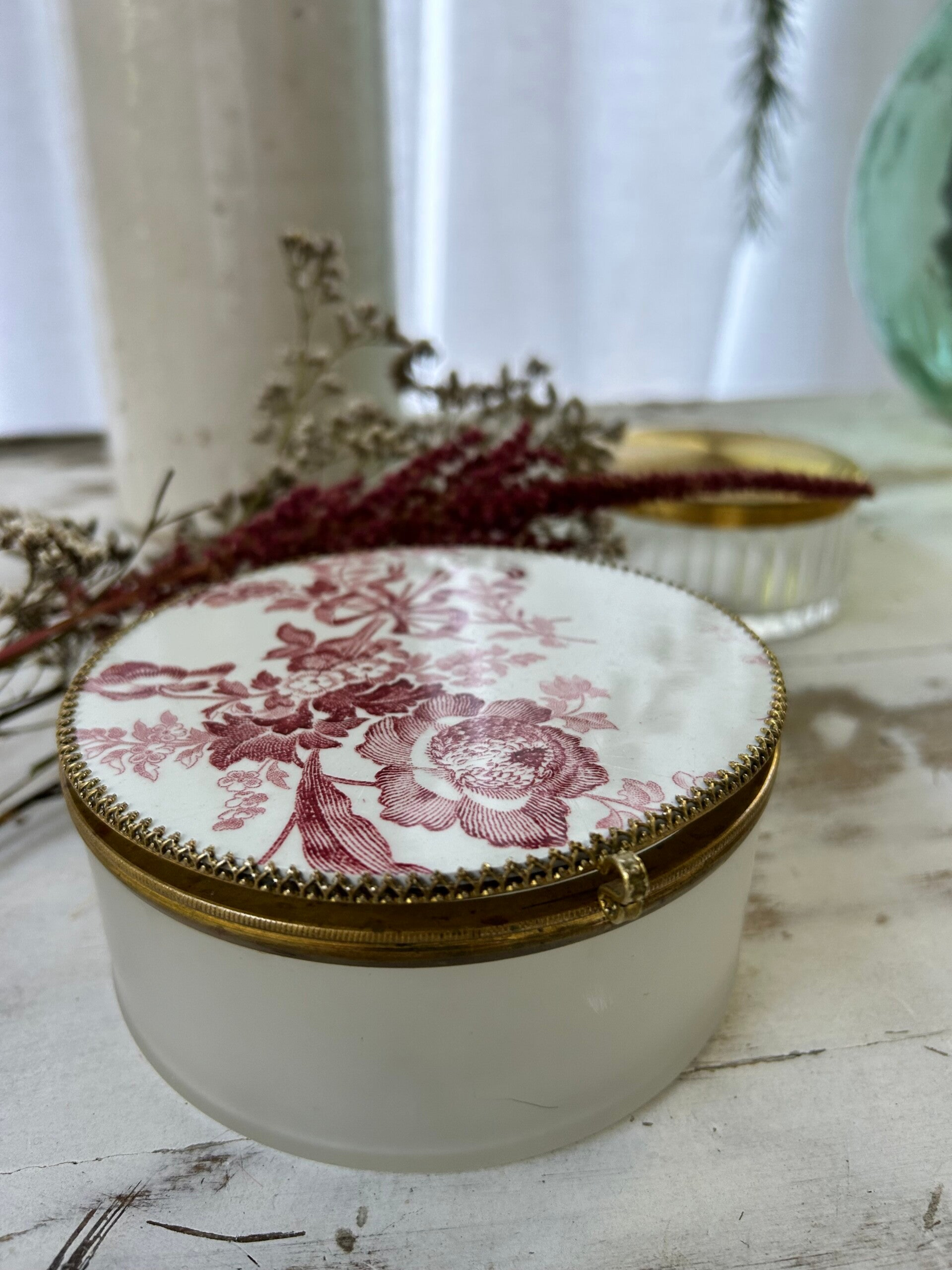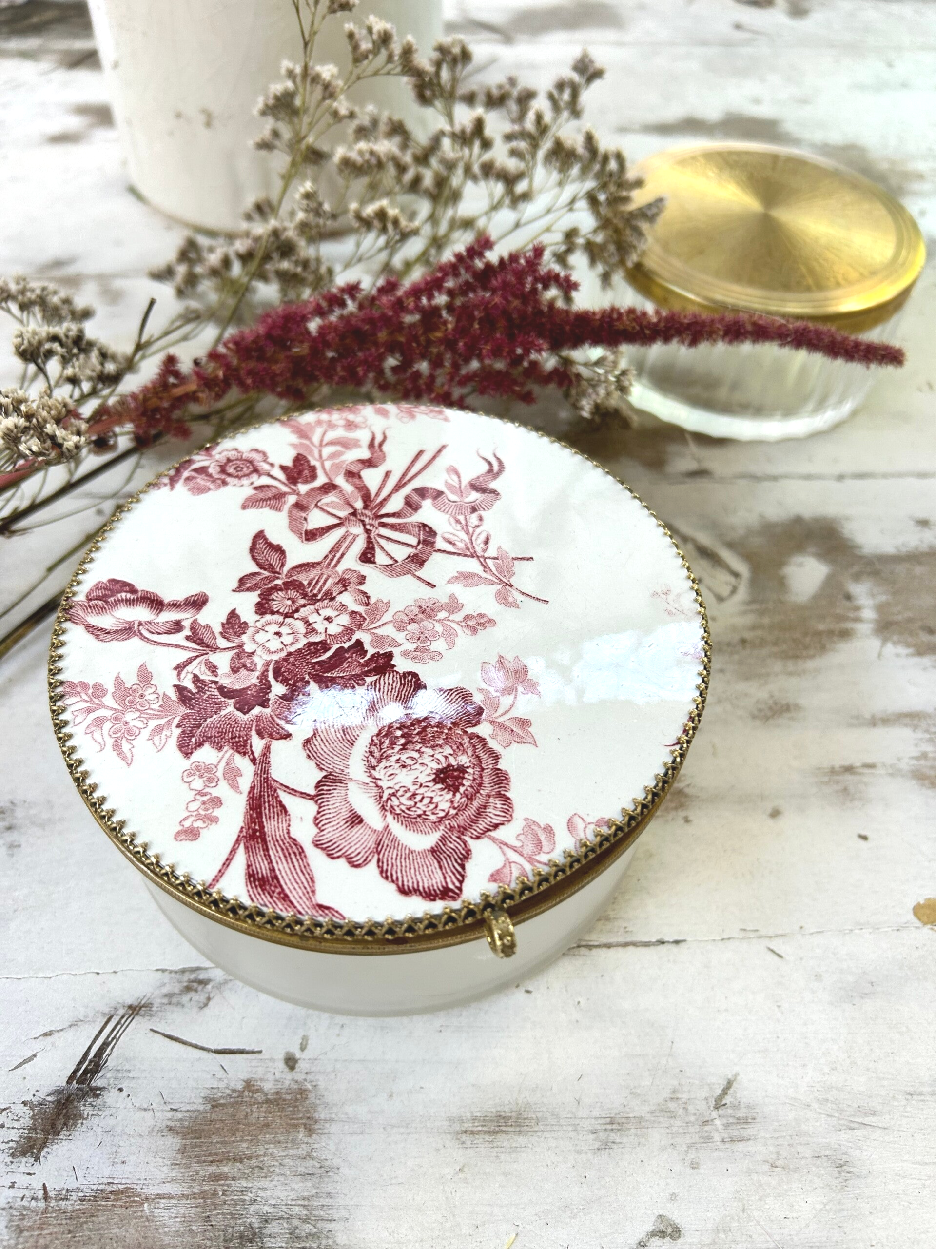son couvercle en verre a été remplacé par un fond d'assiette Sarreguemines modèle Fontanges