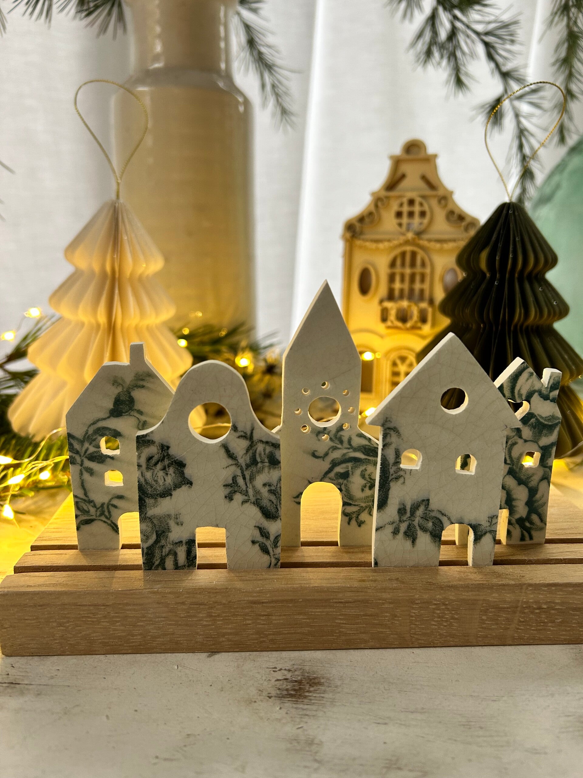 Village taillé dans une assiette Terre de fer modèle Bordeaux (vert)