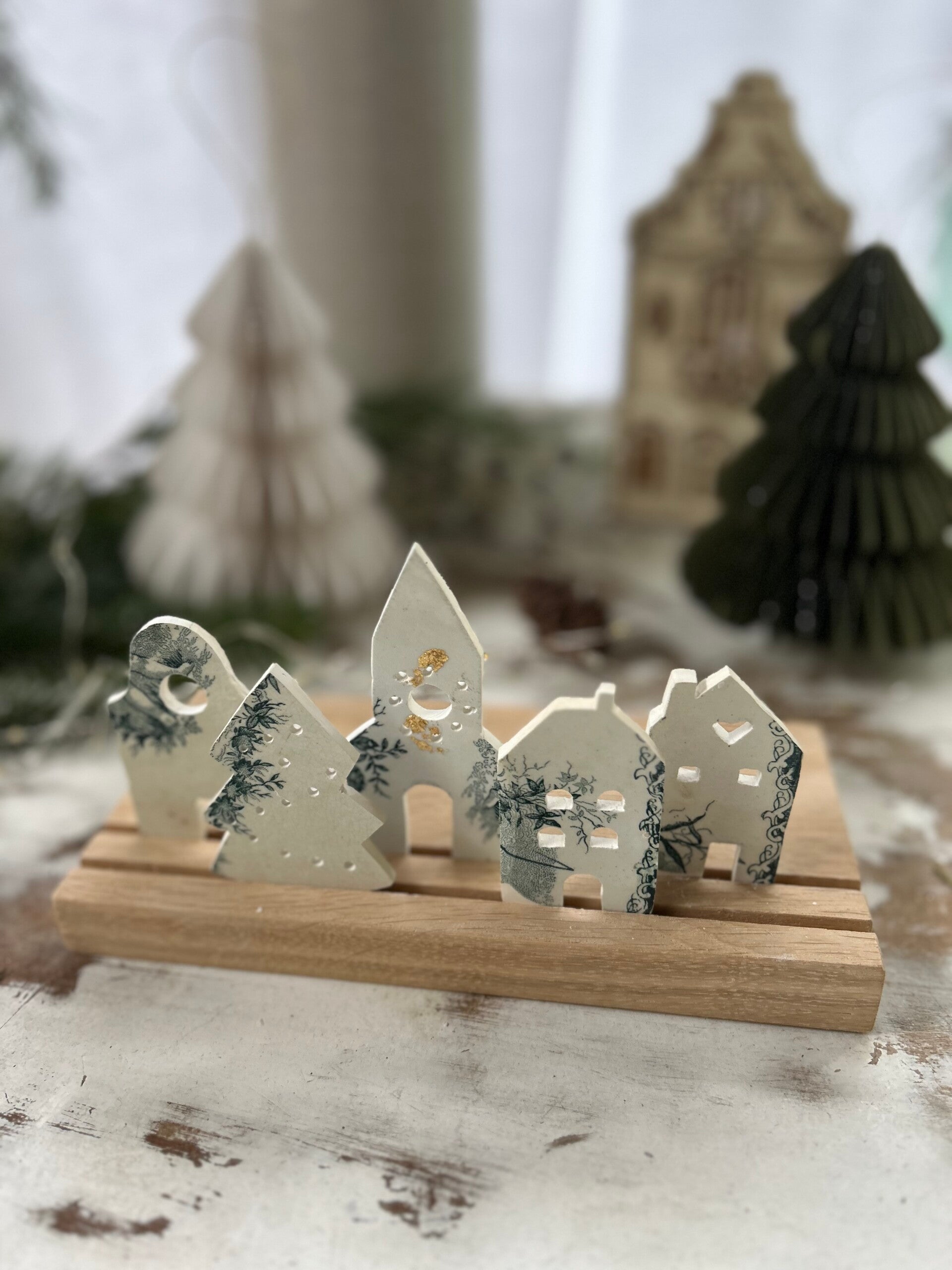 Village taillé dans une assiette Terre de fer Saint Amand modèle jeux d'enfants (vert)