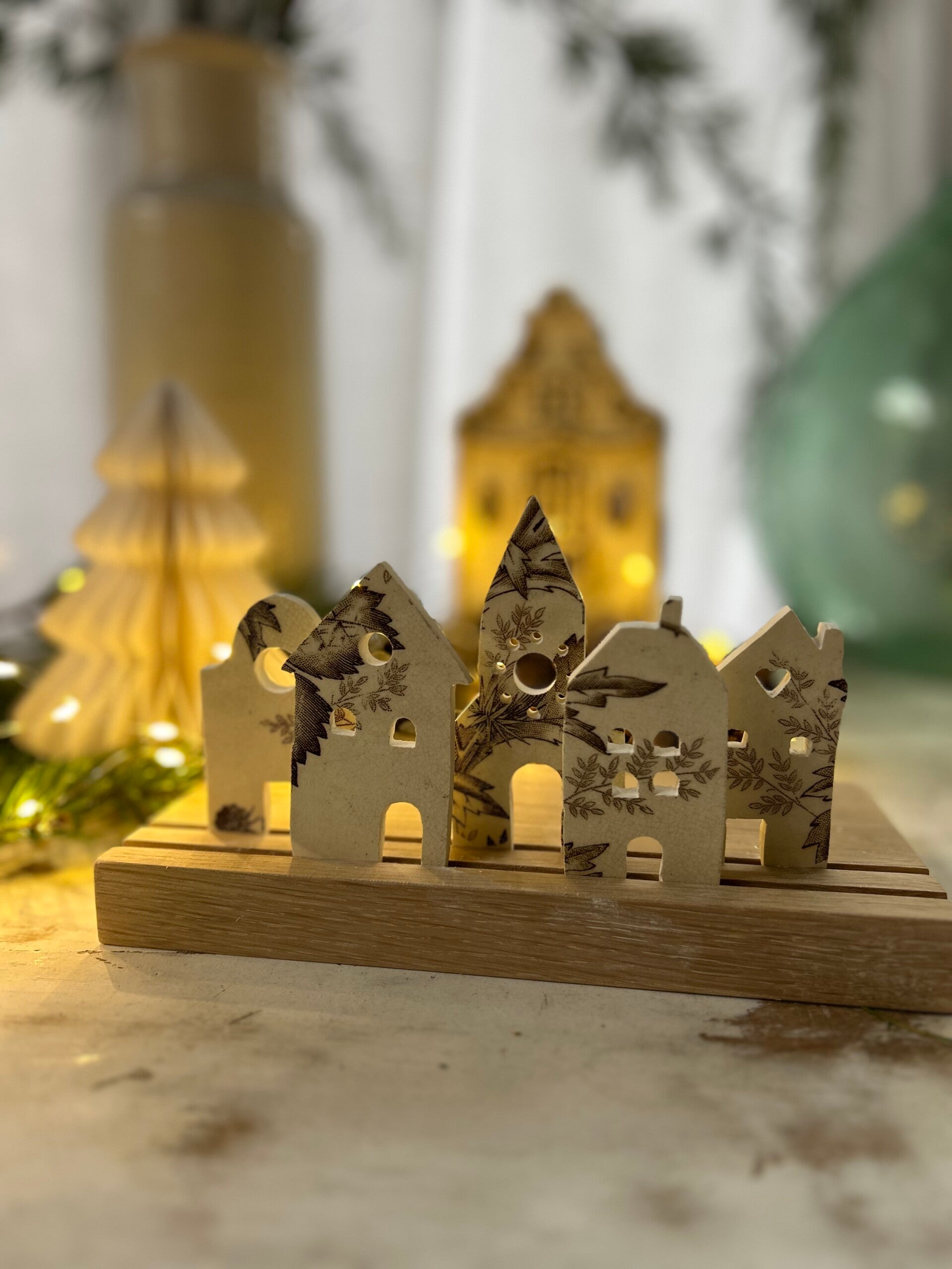 Support en chêne de 20cm x10 cm fabriqué artisanalement, sur lequel vous pouvez déposer bougies ou guirlandes lumineuses