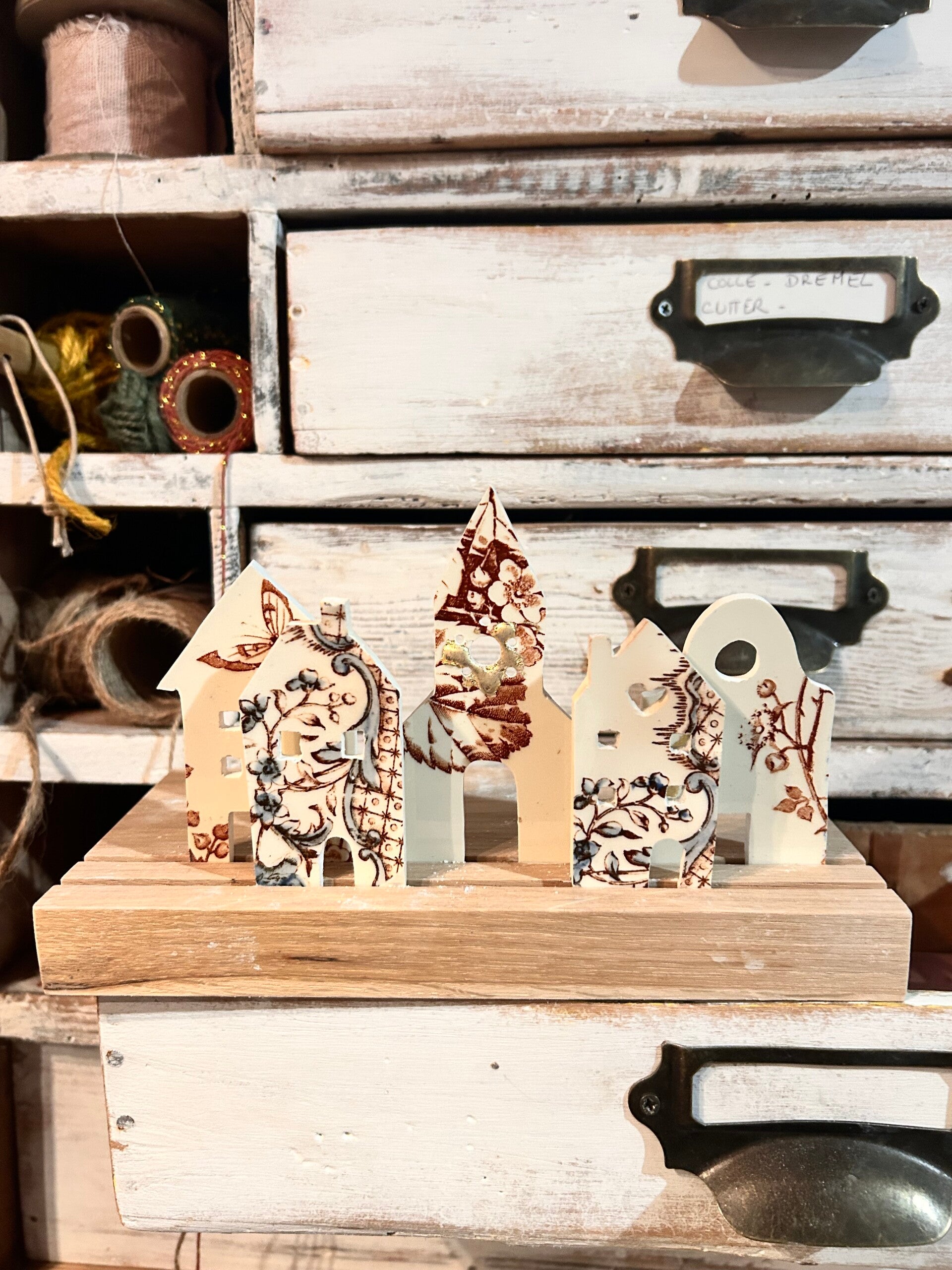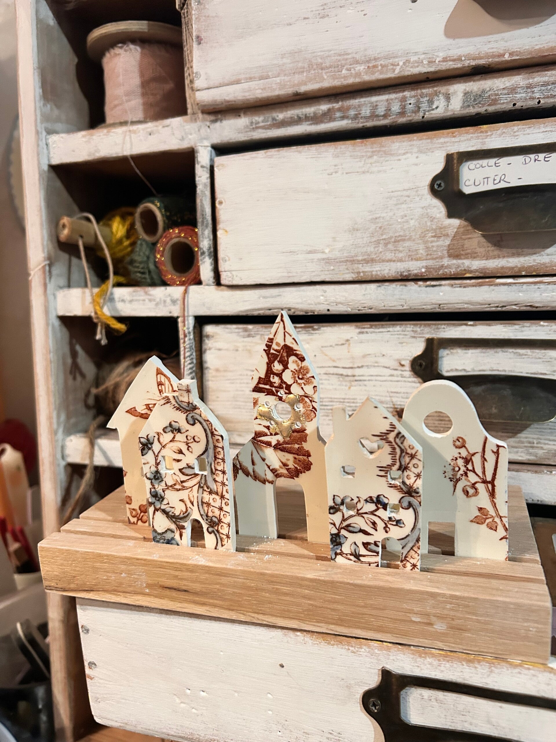 Village taillé dans une assiette Terre de fer Jules Vieillard (sépia )