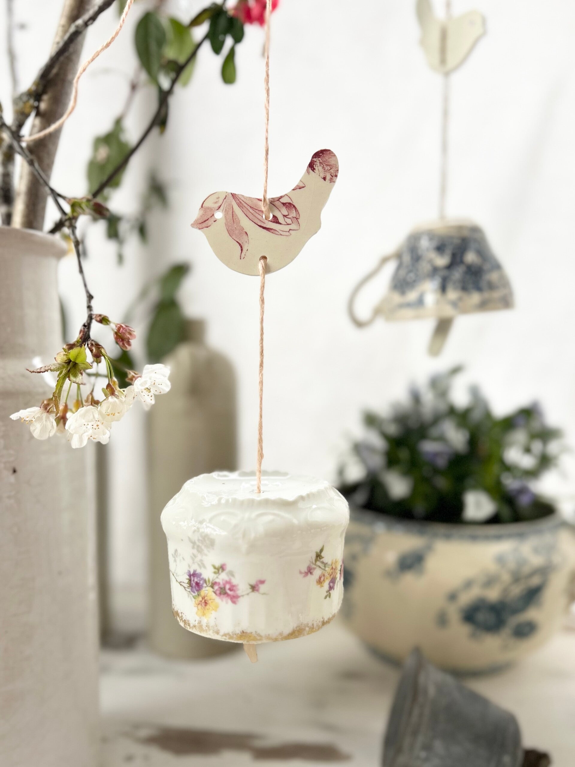 Cloche créée avec une tasse en porcelaine dont l'ance était absente