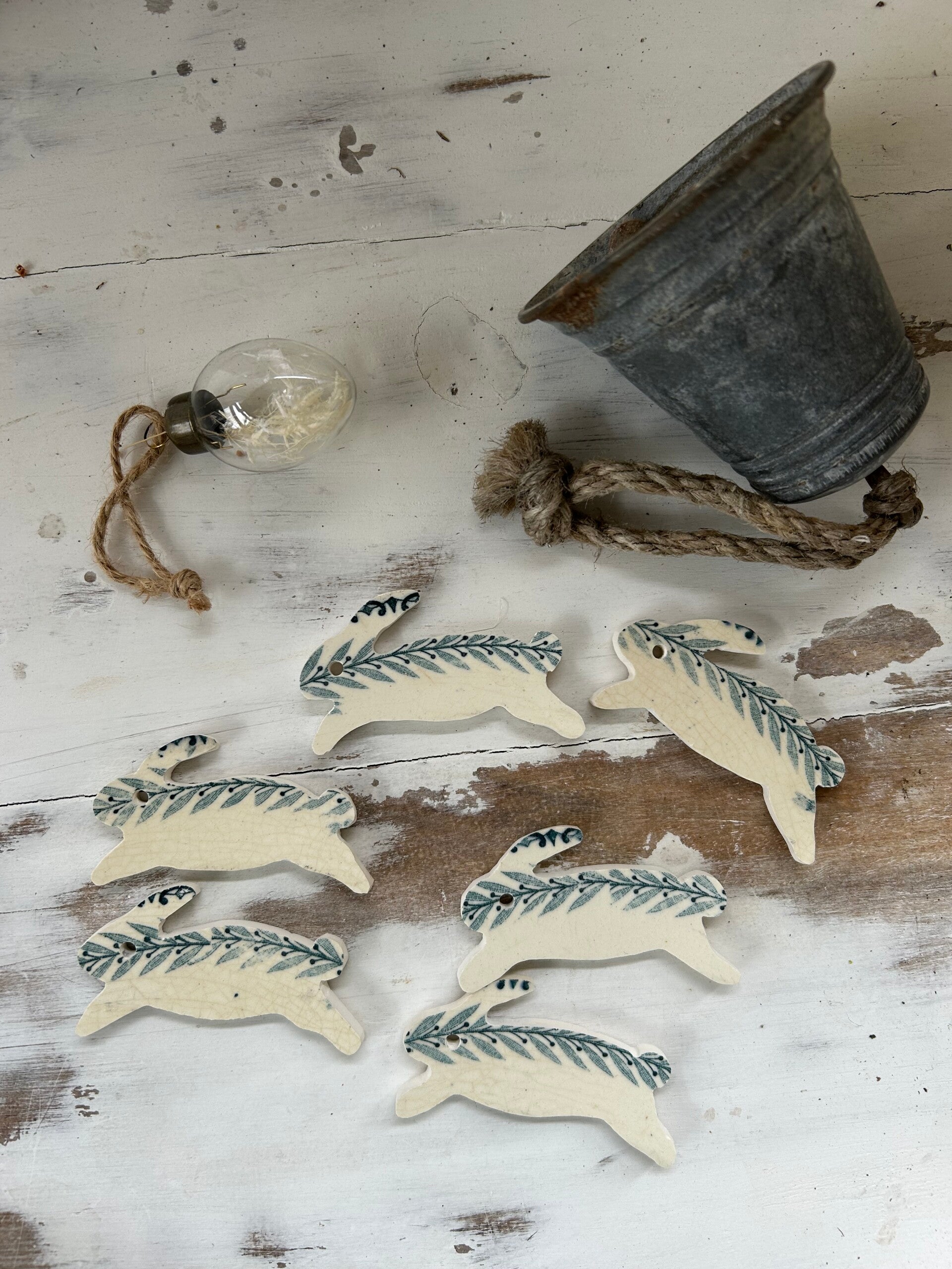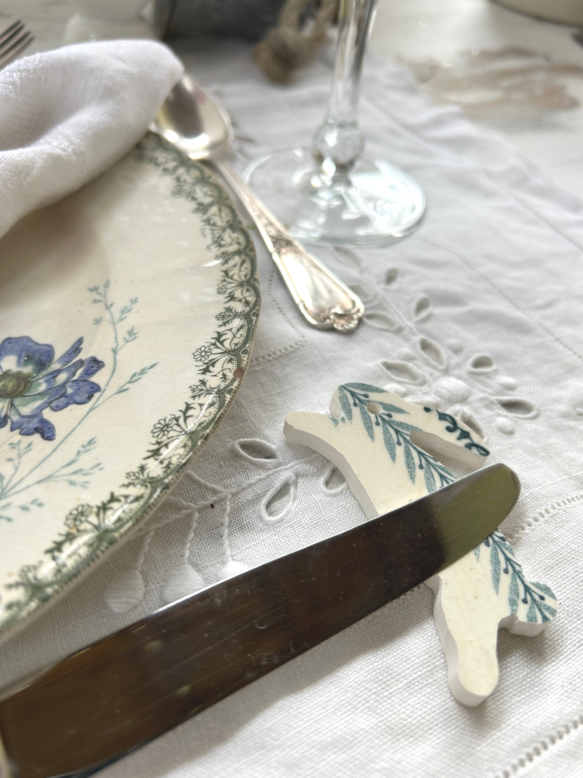 Lot de 6 lapins taillés dans une assiette terre de fer