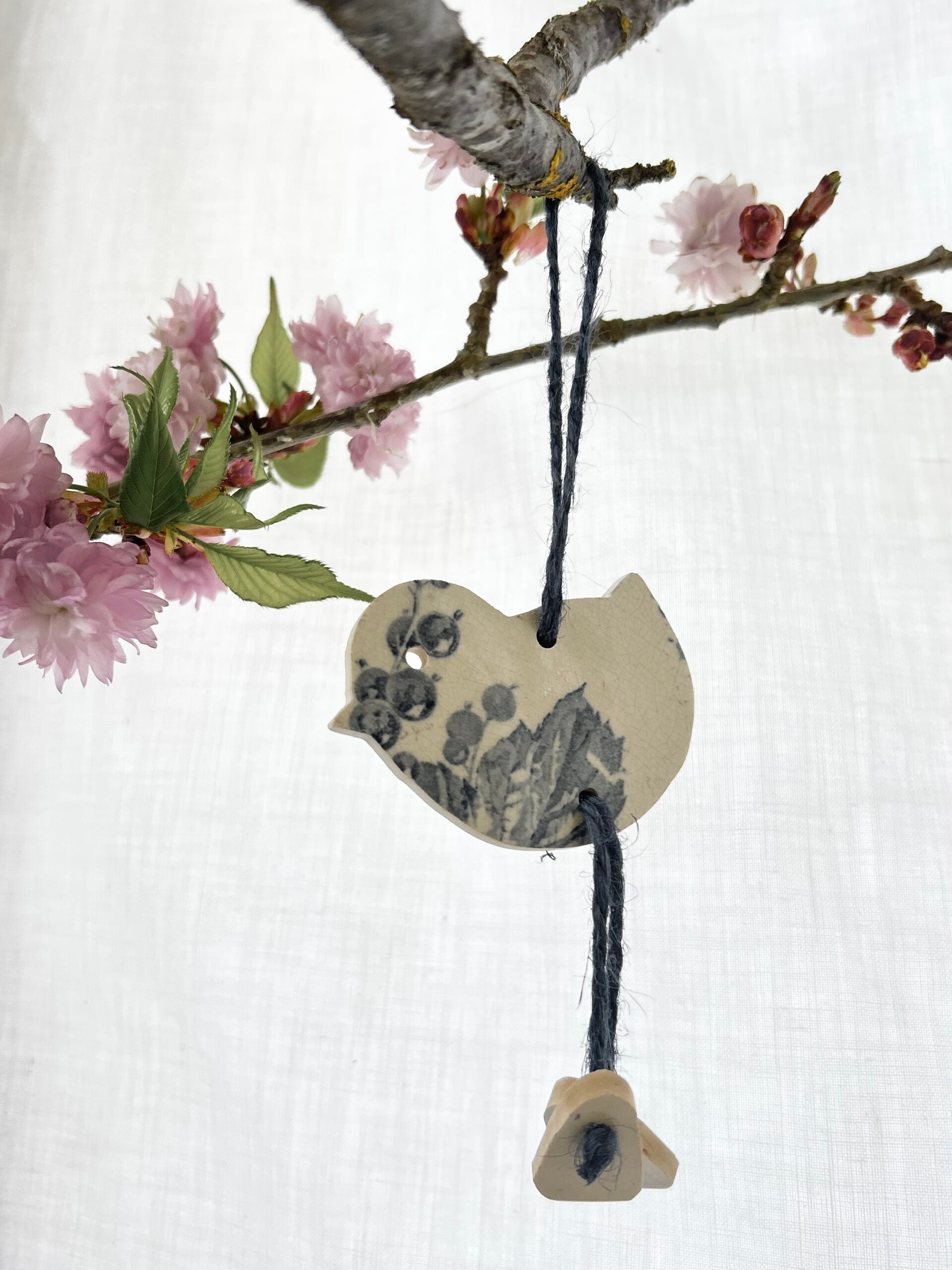 Poussin taillé dans une assiette polychrome terre de fer Sarreguemines modèle Groseilles