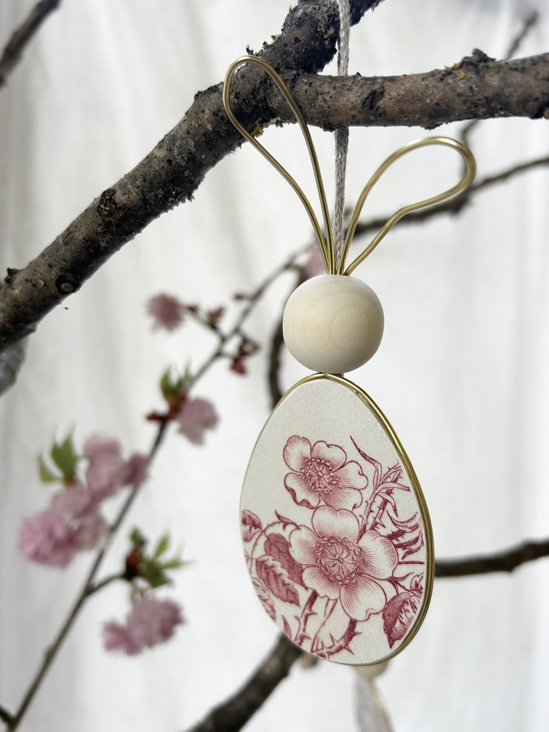Lapin à suspendre taillé dans une assiette Pexonne modèle Fleurs des champ