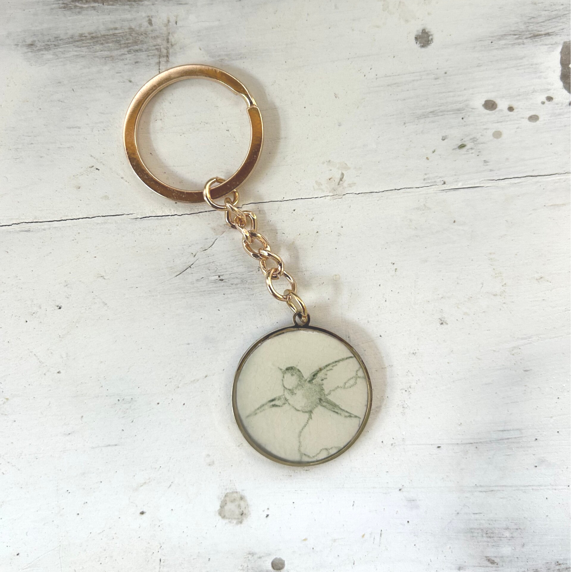 Porte clés dont le cabochon a été taillé dans une assiette Tere de fer Gien modéle rinceaux