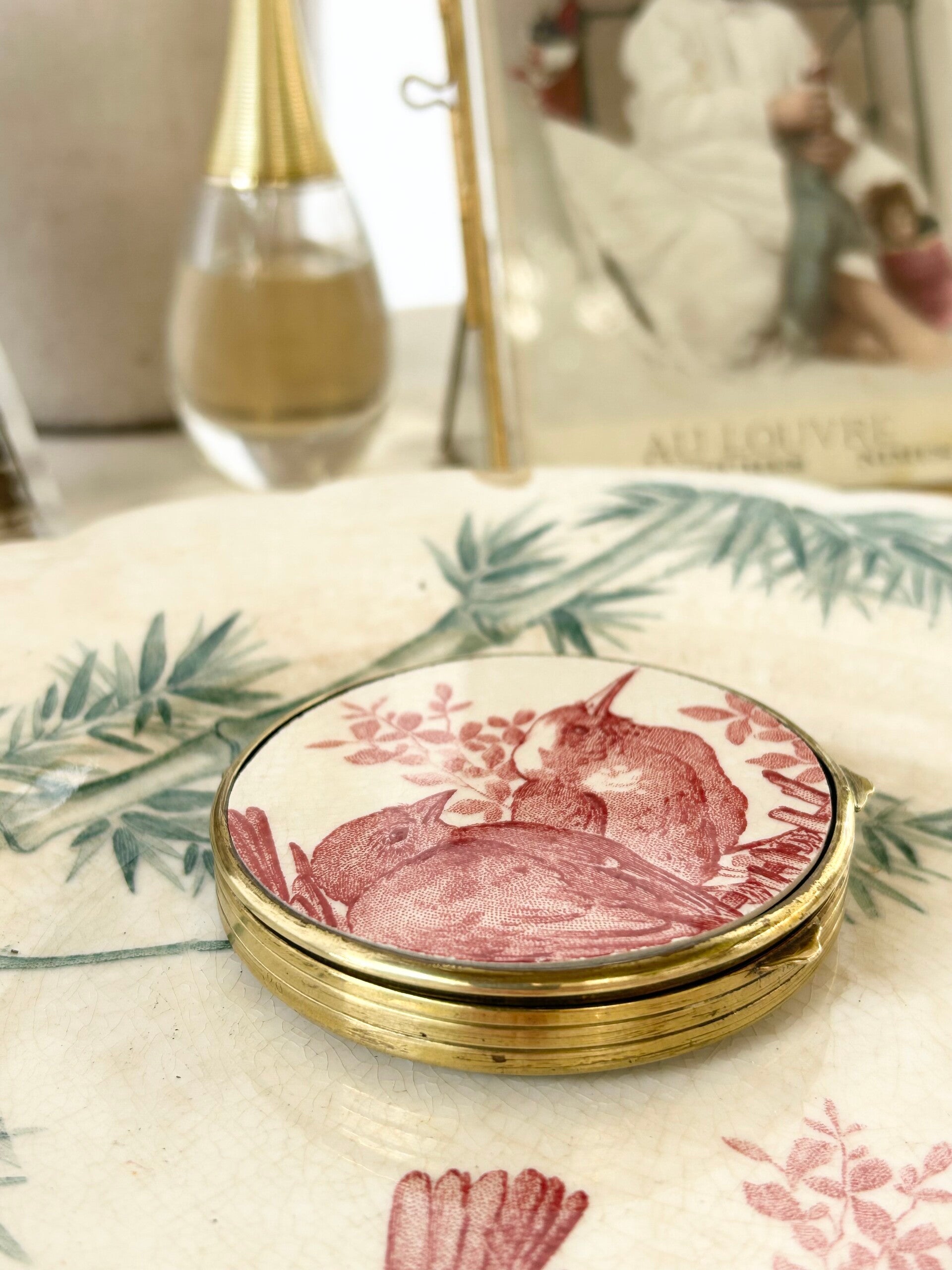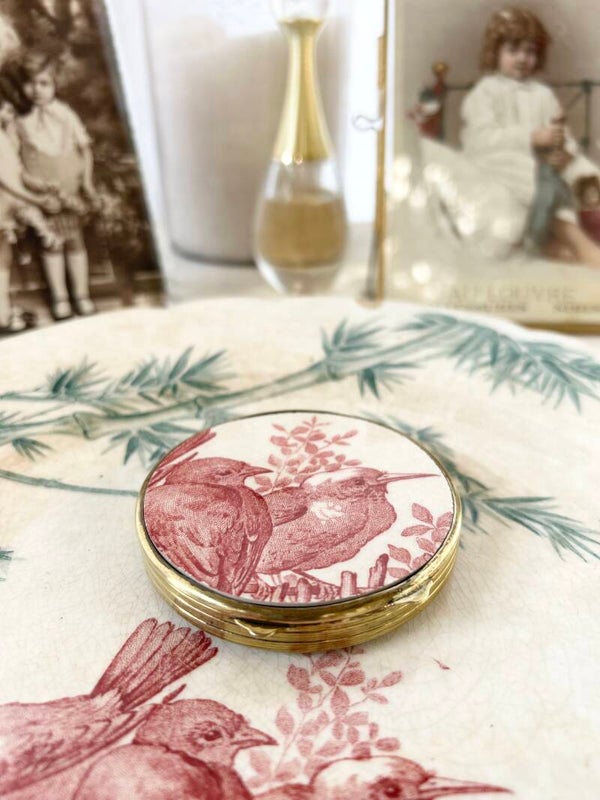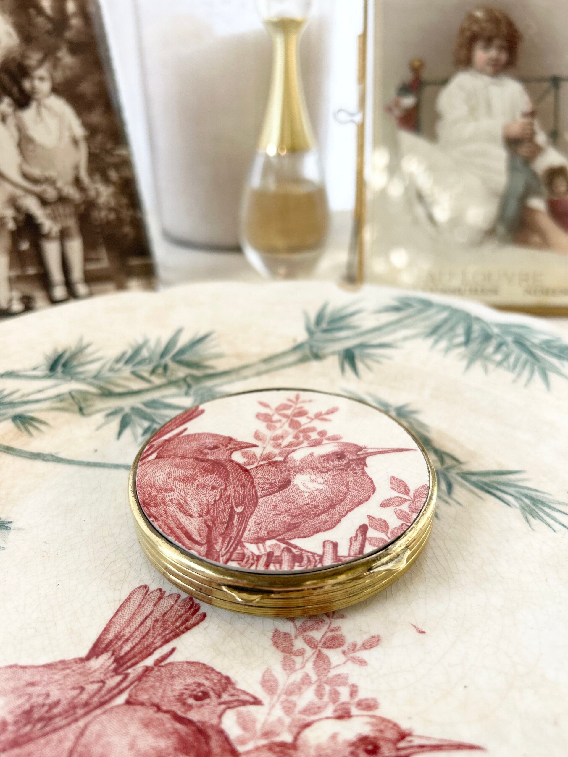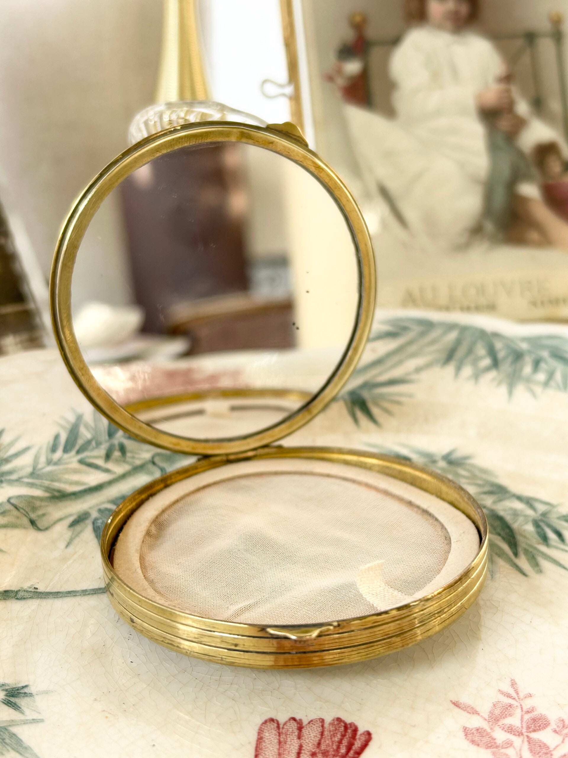 Ce poudrier ancien en laiton doré a été délicatement restauré et transformé à la main.