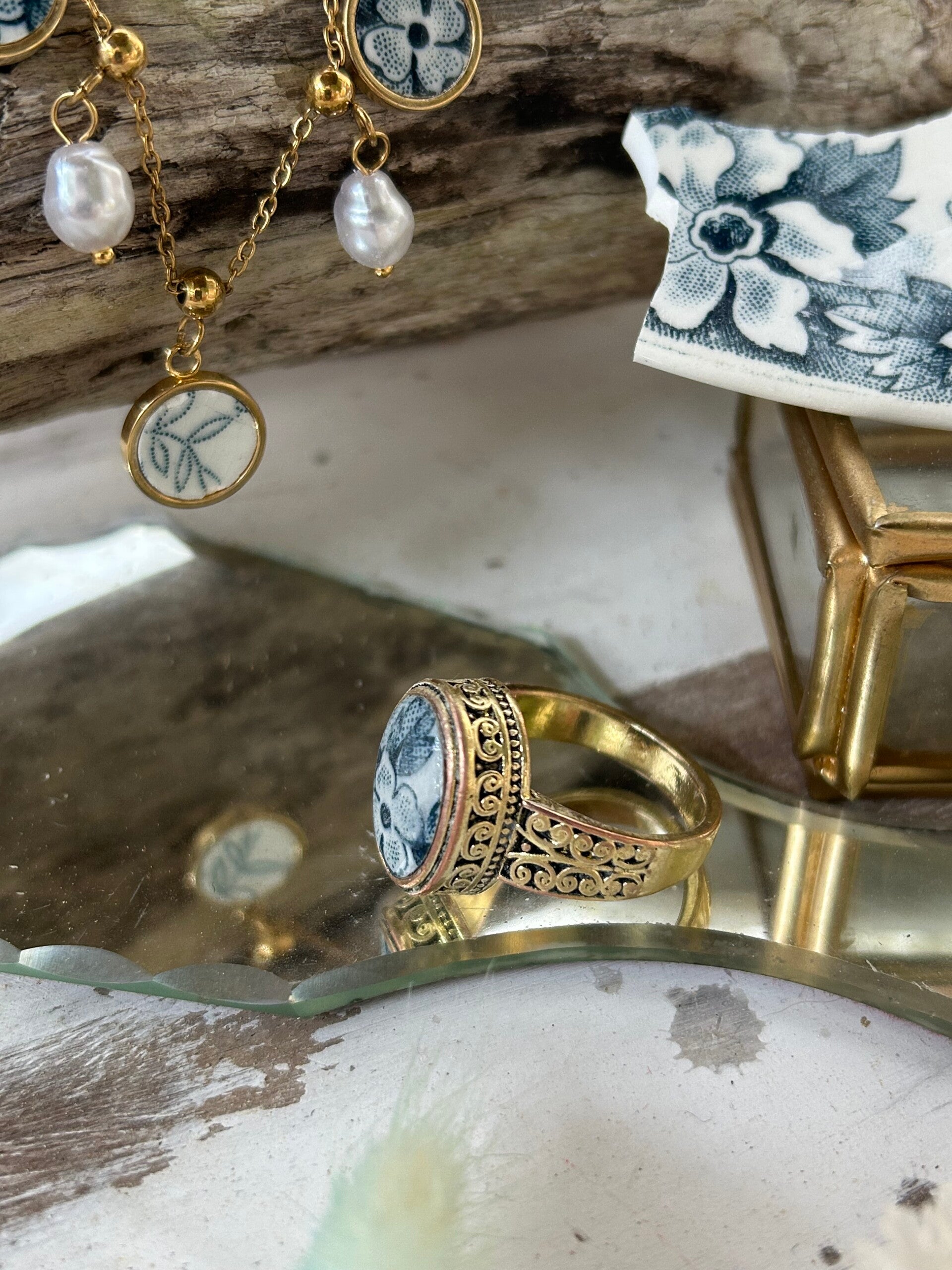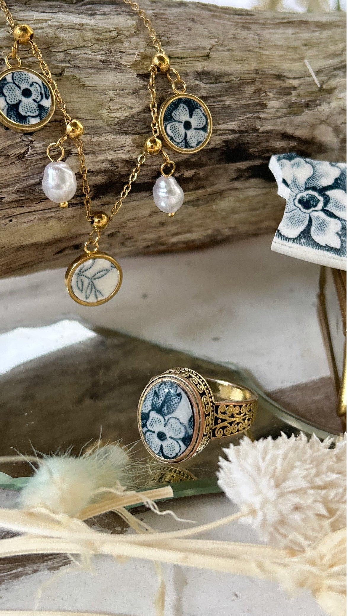 Son cabochon est taillé dans une assiette terre de fer Saint Amand Marie Louise