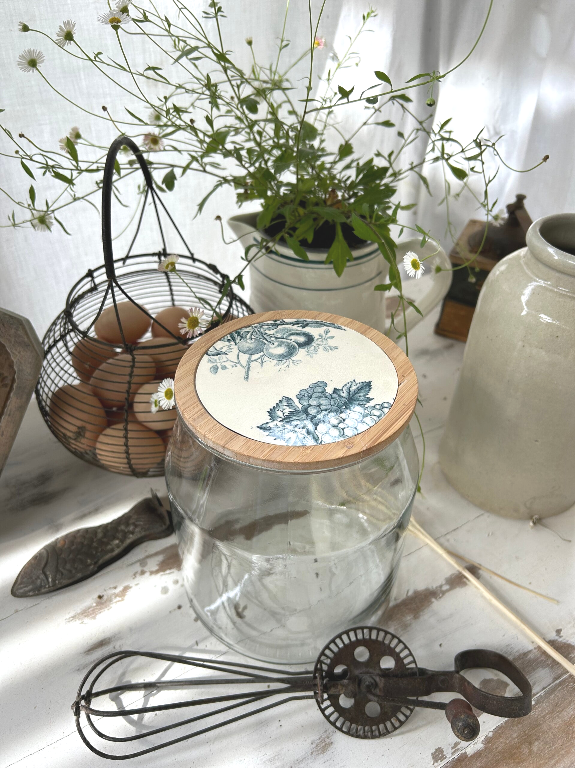 Grand Pot de conservation en verre, agrémenté de motifs de fruits