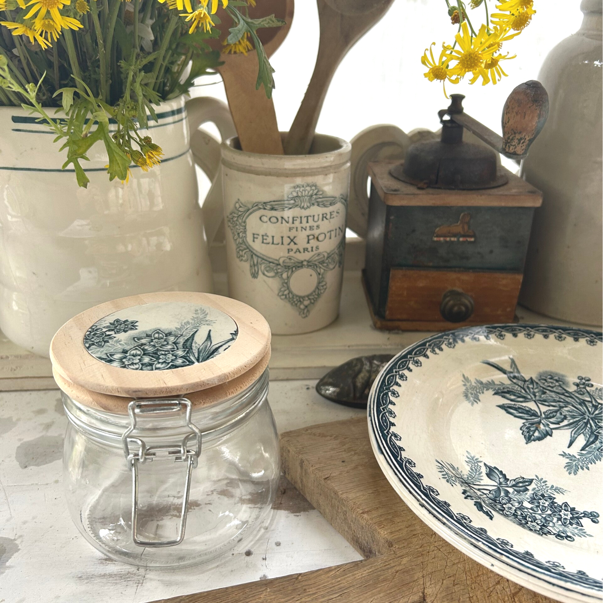 Pots de conservation en verre , agrémenté de motifs de fleurs
