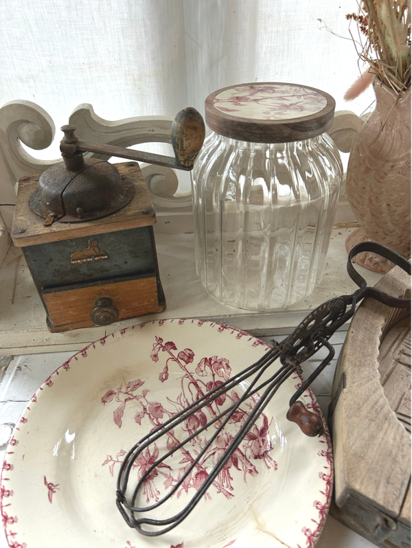 Pot de conservation en verre, agrémenté de fleurs de Fushia