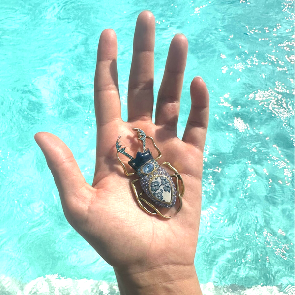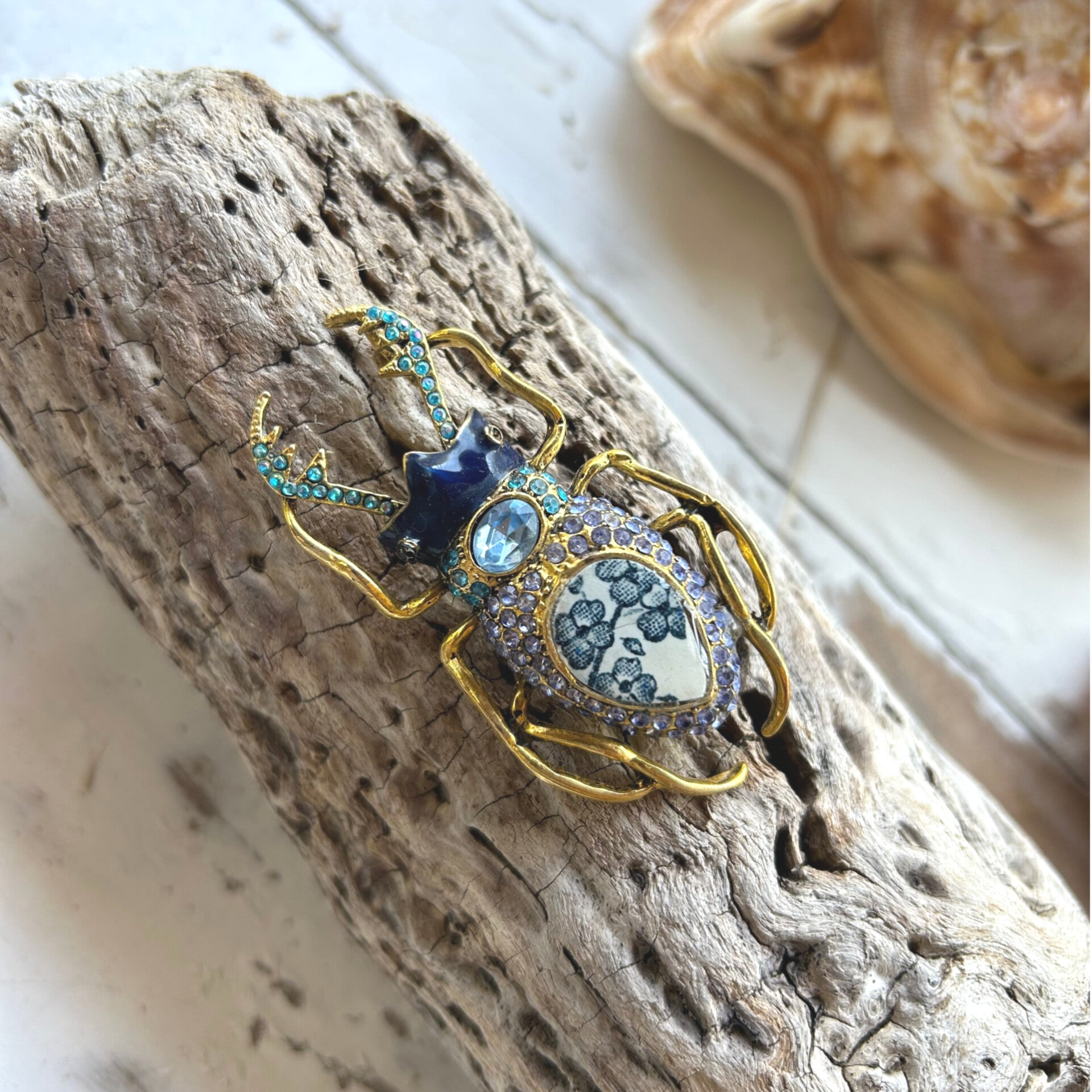 Broche Scarabée doré & faïence ancienne Salins Strasbourg