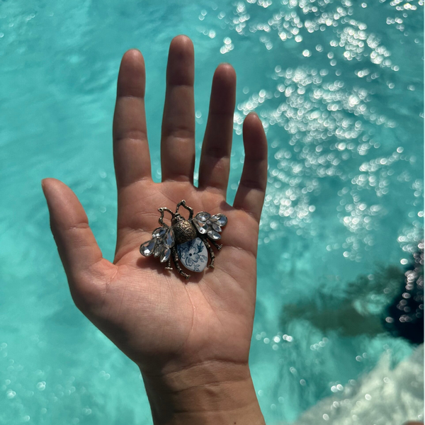 Un bijou poétique qui allie la symbolique du bourdon, messager de prospérité et de vitalité, à l’élégance intemporelle de la faïence ancienne.