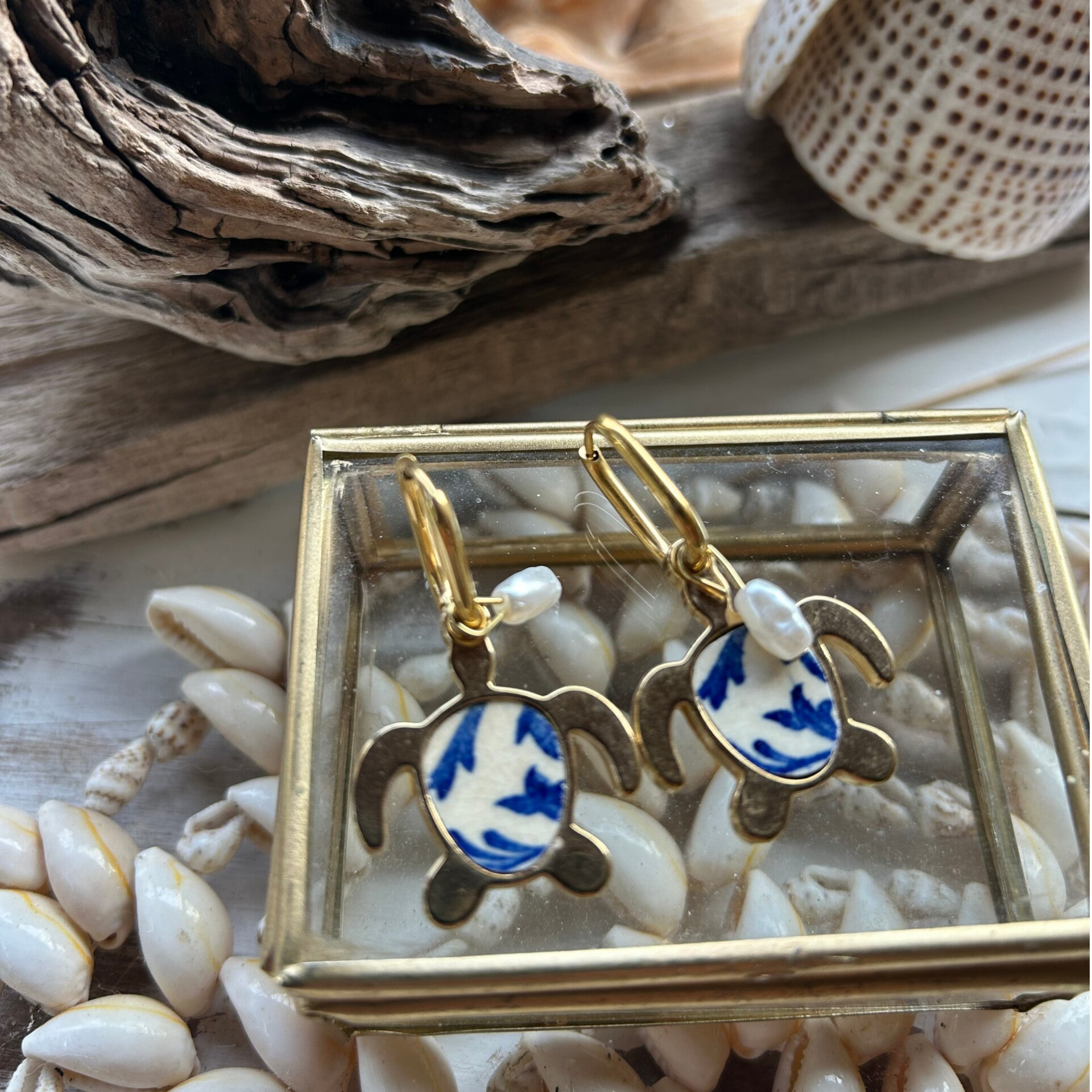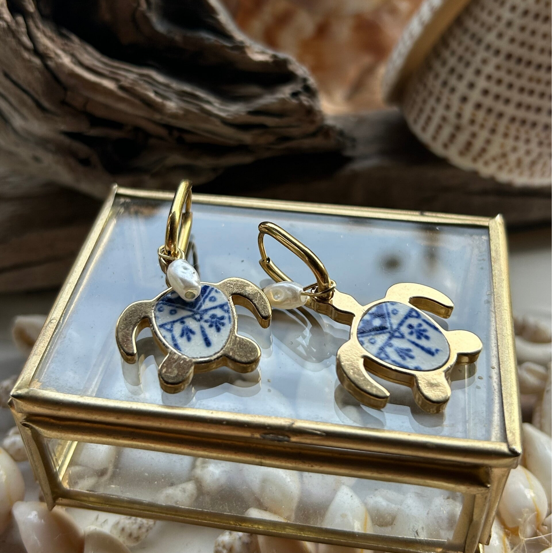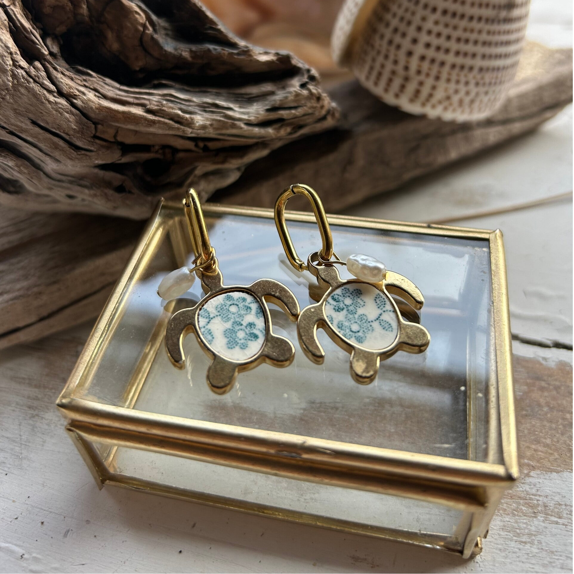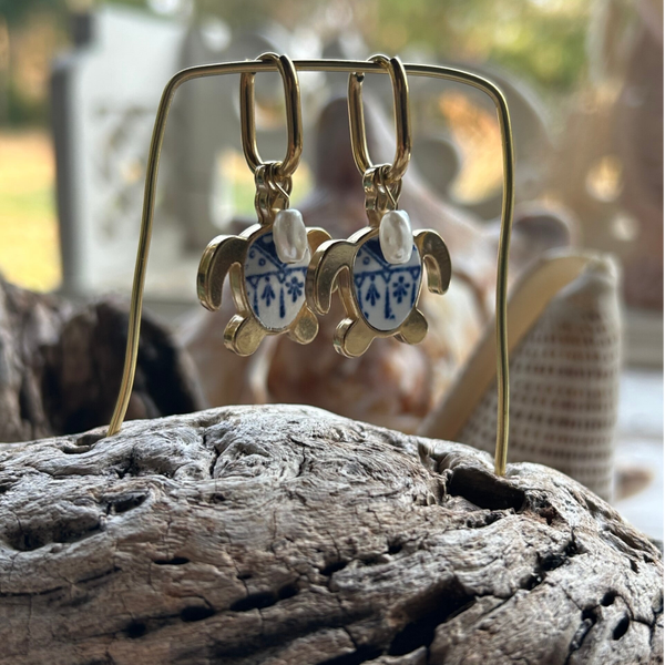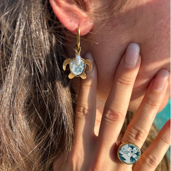 Boucles d’oreilles Tortue & Perles – Collection La Grande Bleue