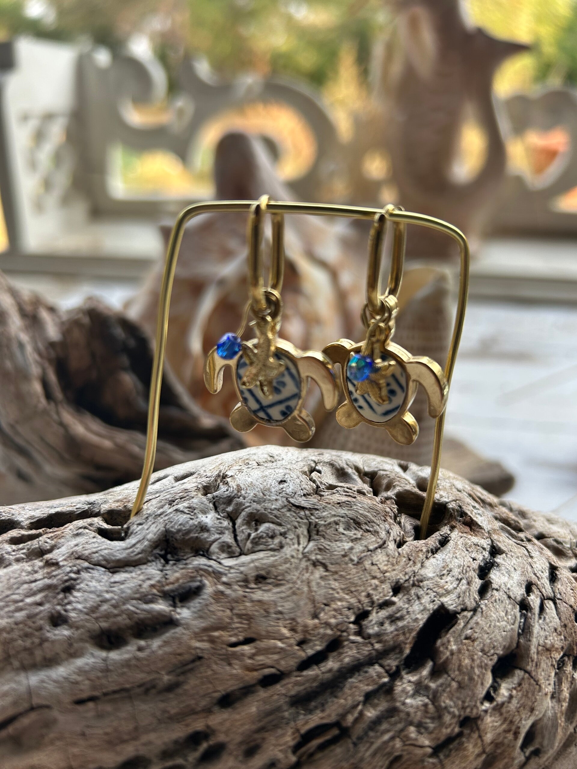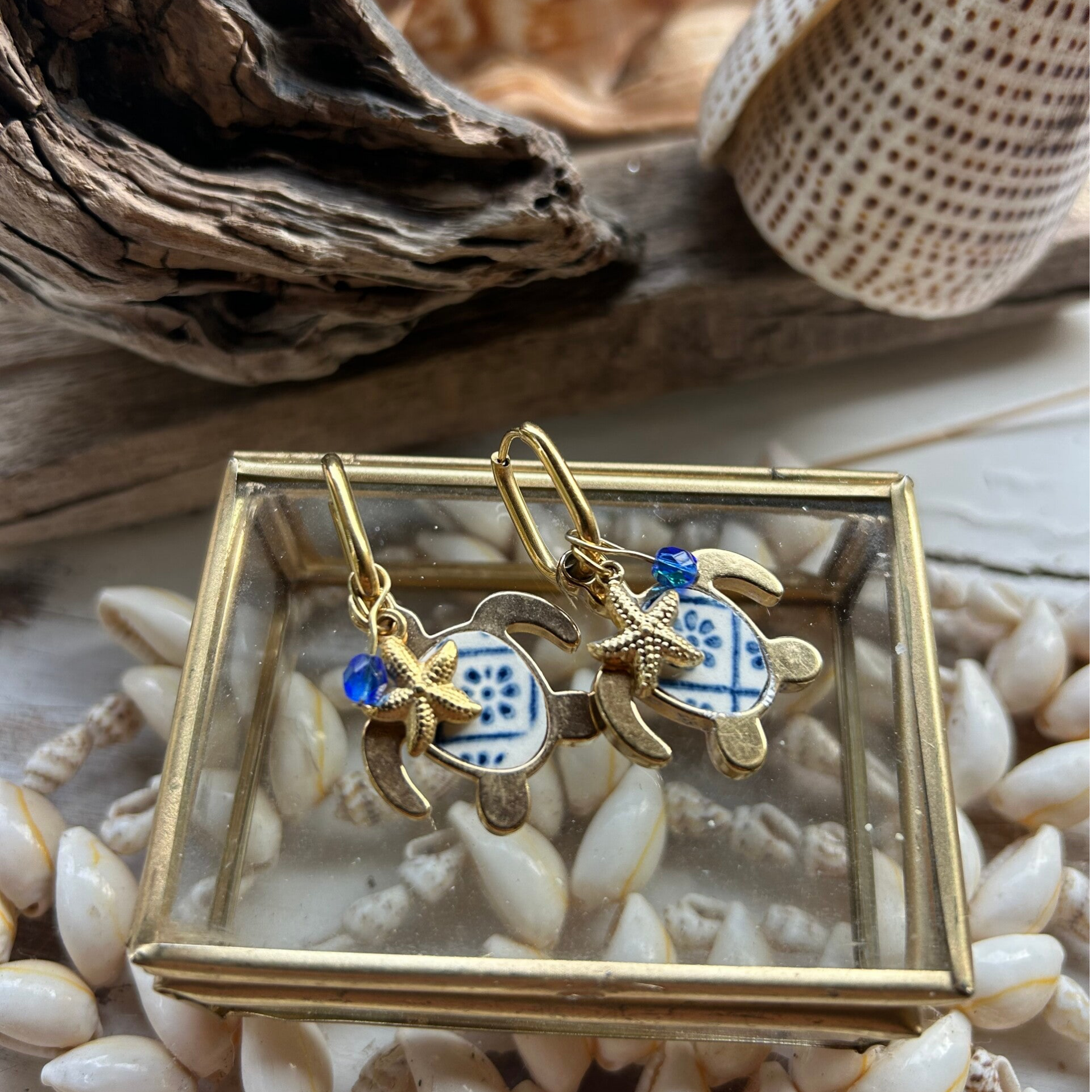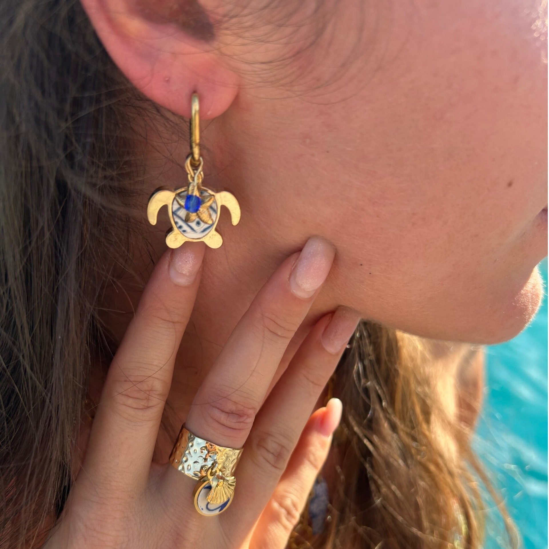 Boucles d’oreilles Tortue & Perles – Collection La Grande Bleue