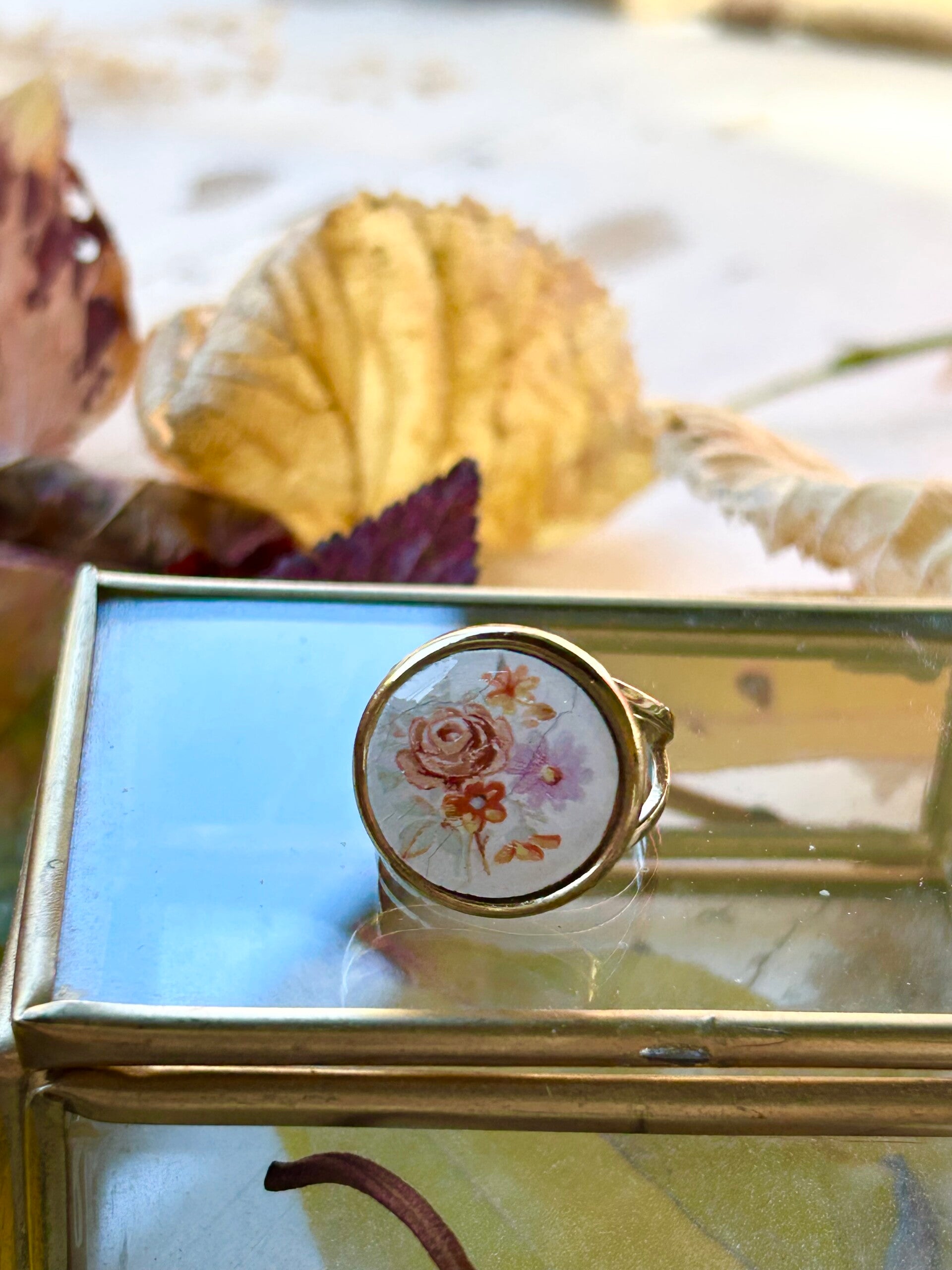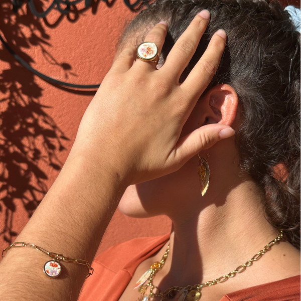 Bague unique façonné dans une assiette ancienne en faïence Terre de Fer Salins modèle Empire