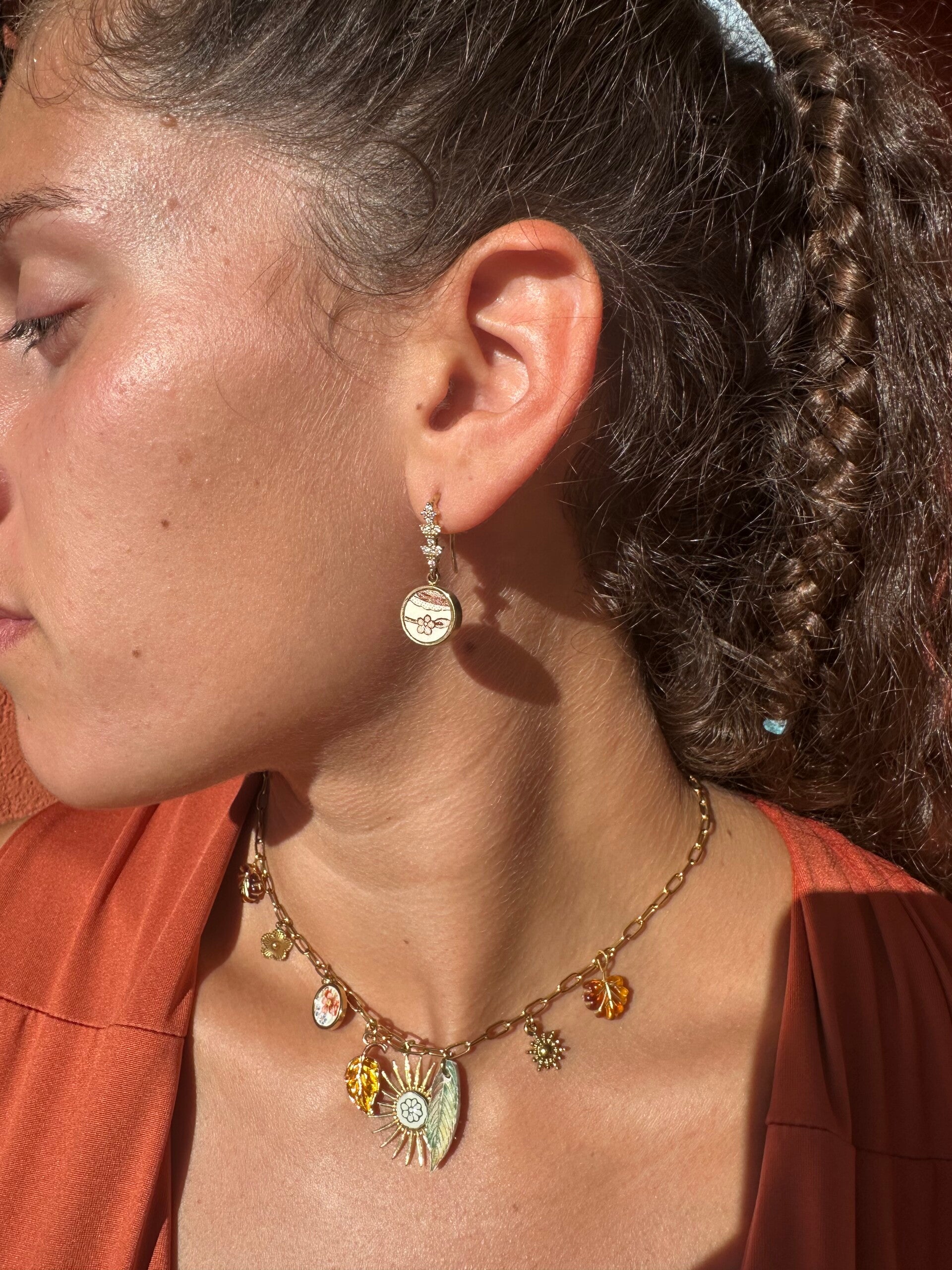 Une touche d’élégance vintage et naturelle qui met en valeur l’histoire des céramiques anciennes tout en offrant une légèreté parfaite pour un port quotidien.