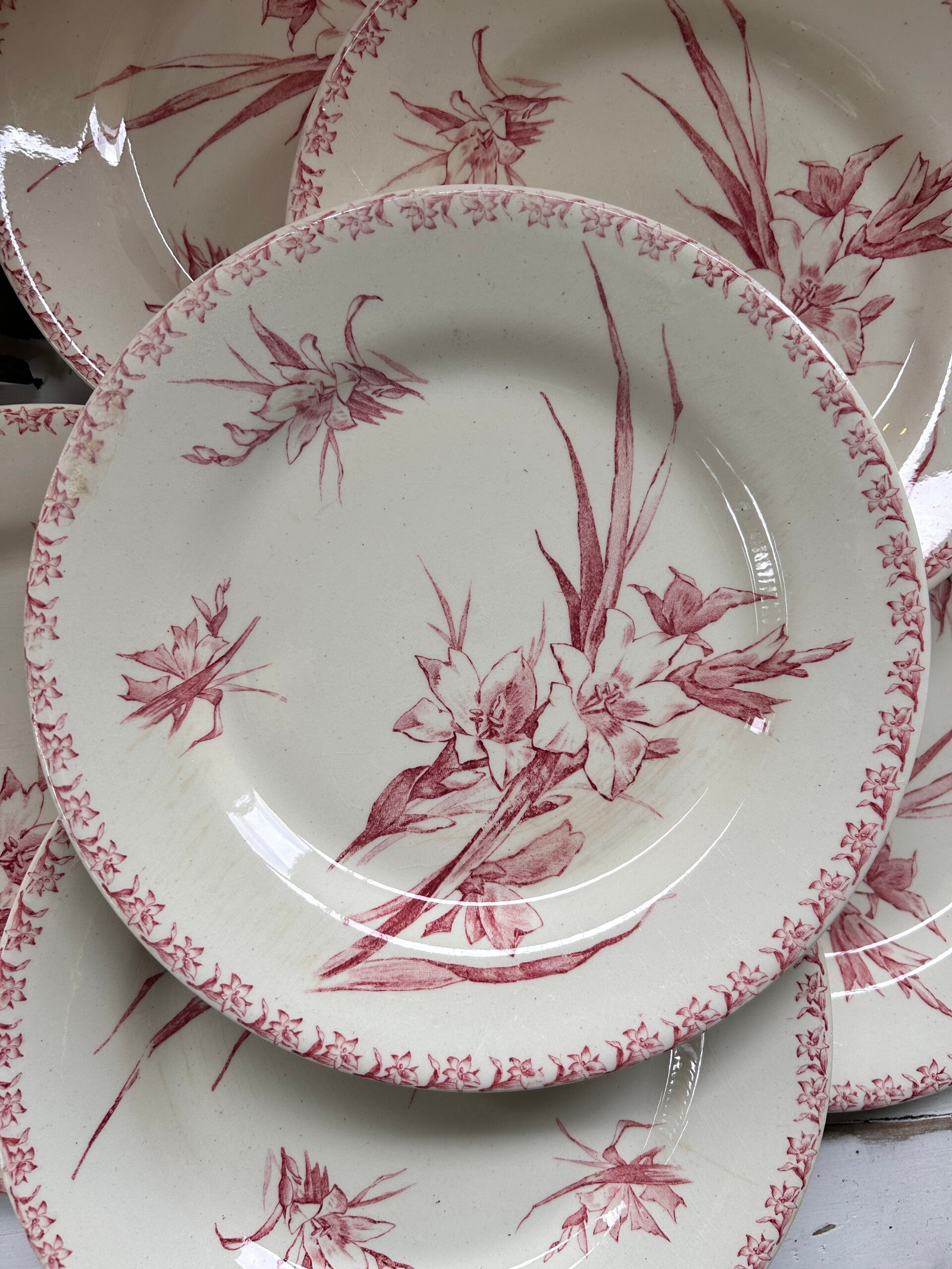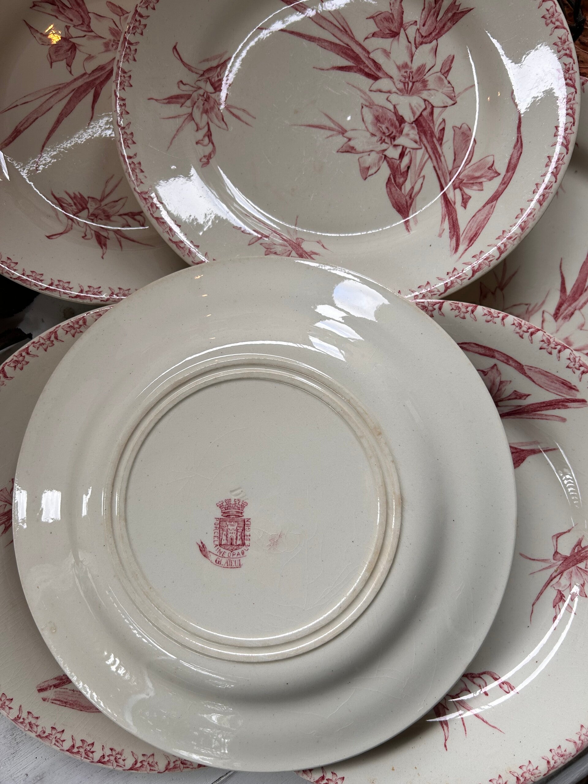 Lot de 6 assiettes plates Gien – Terre de fer – Modèle “Glaïeuls”