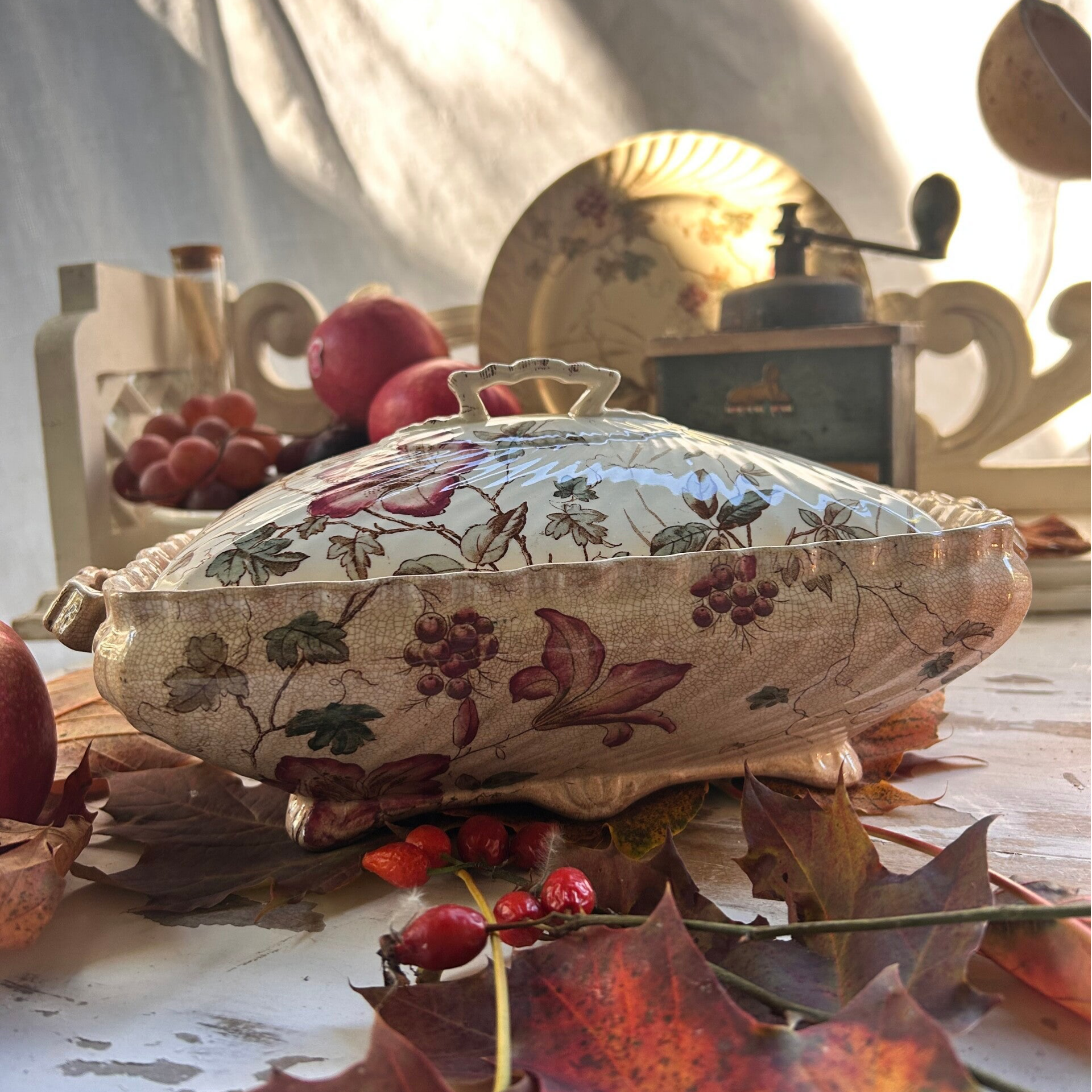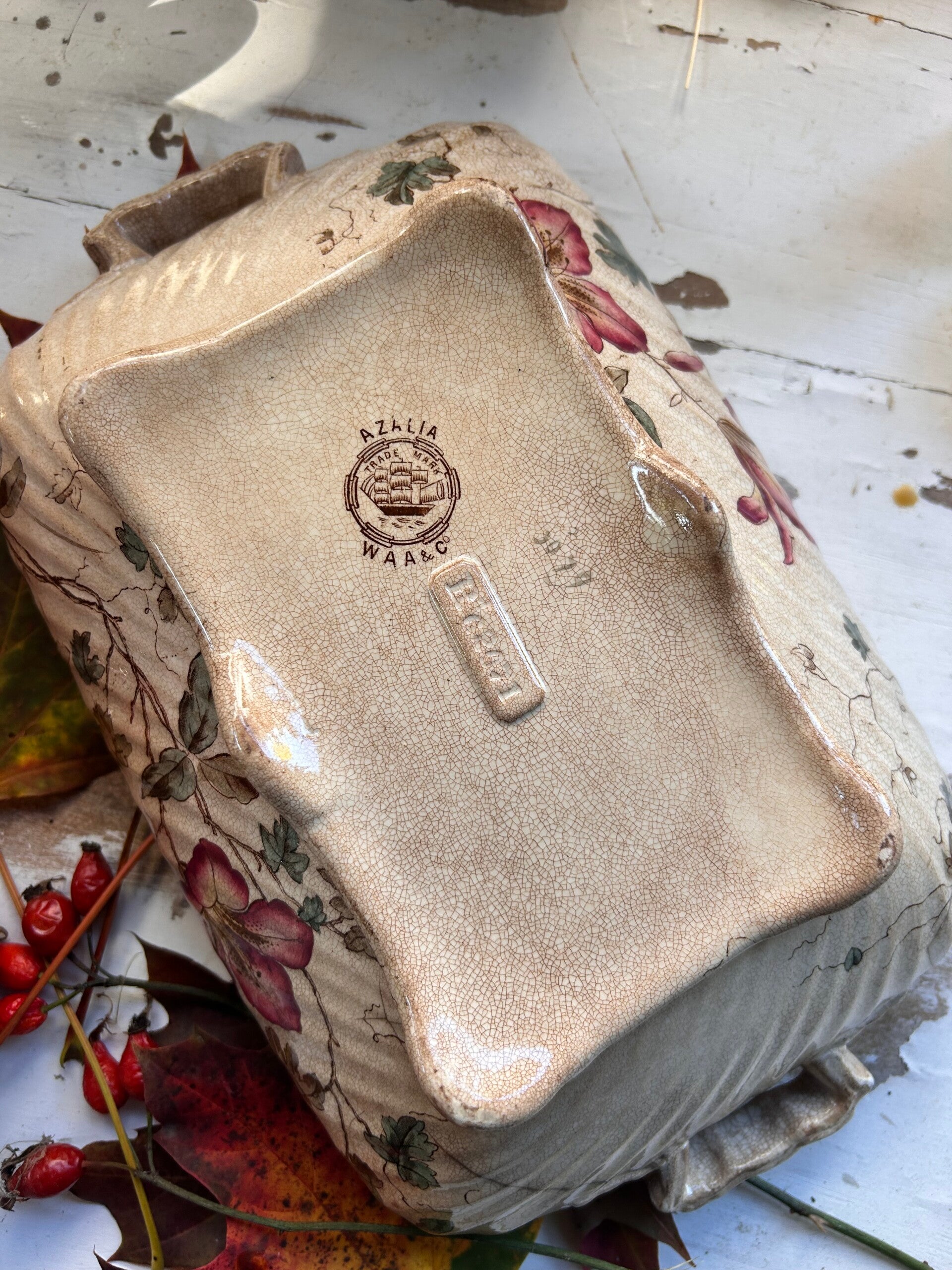 Charmant légumier en faïence fine signé W.A.A & Co, modèle Azalia.