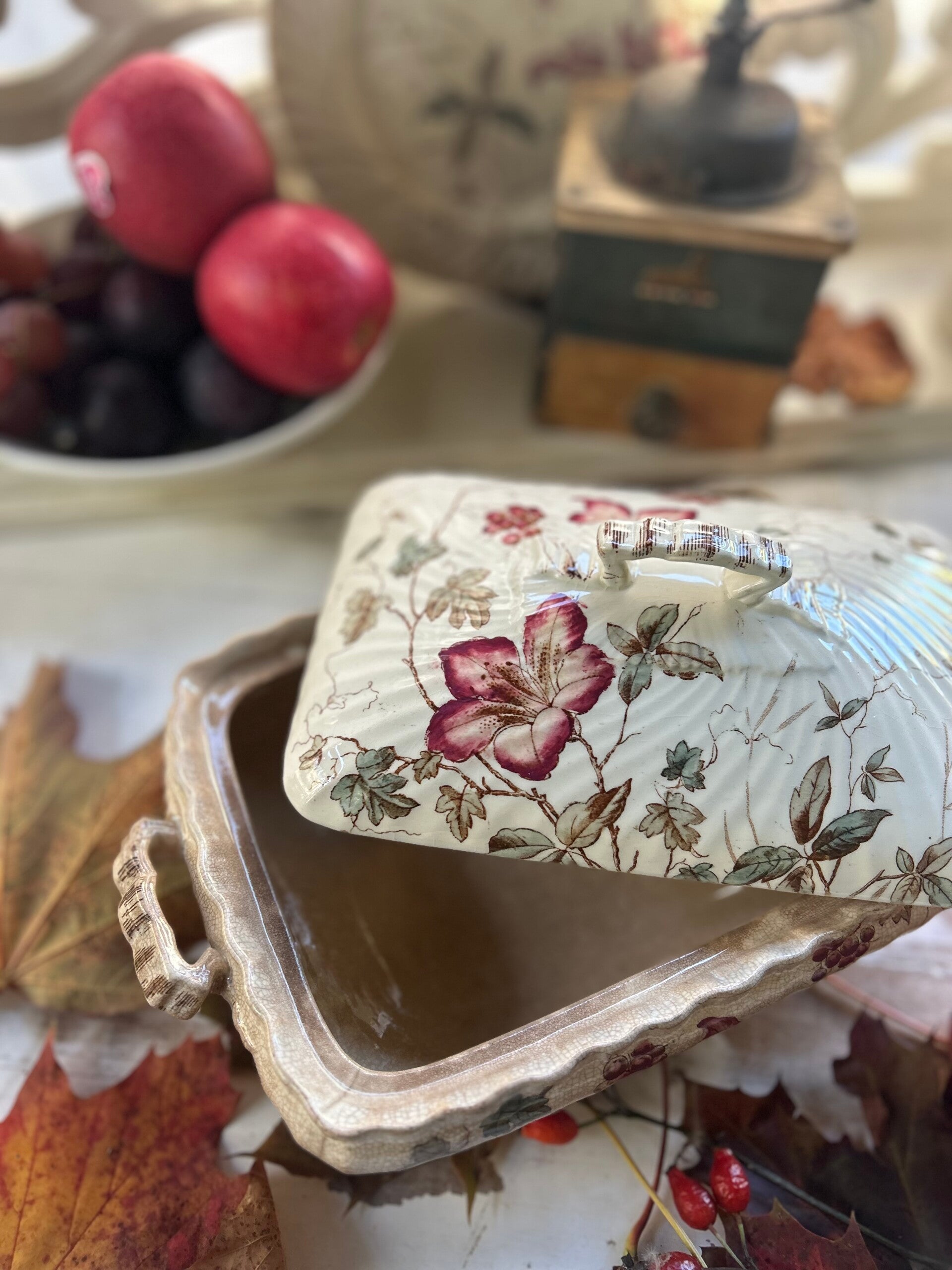 Son décor floral délicat et intemporel illustre le raffinement des faïenceries anciennes.