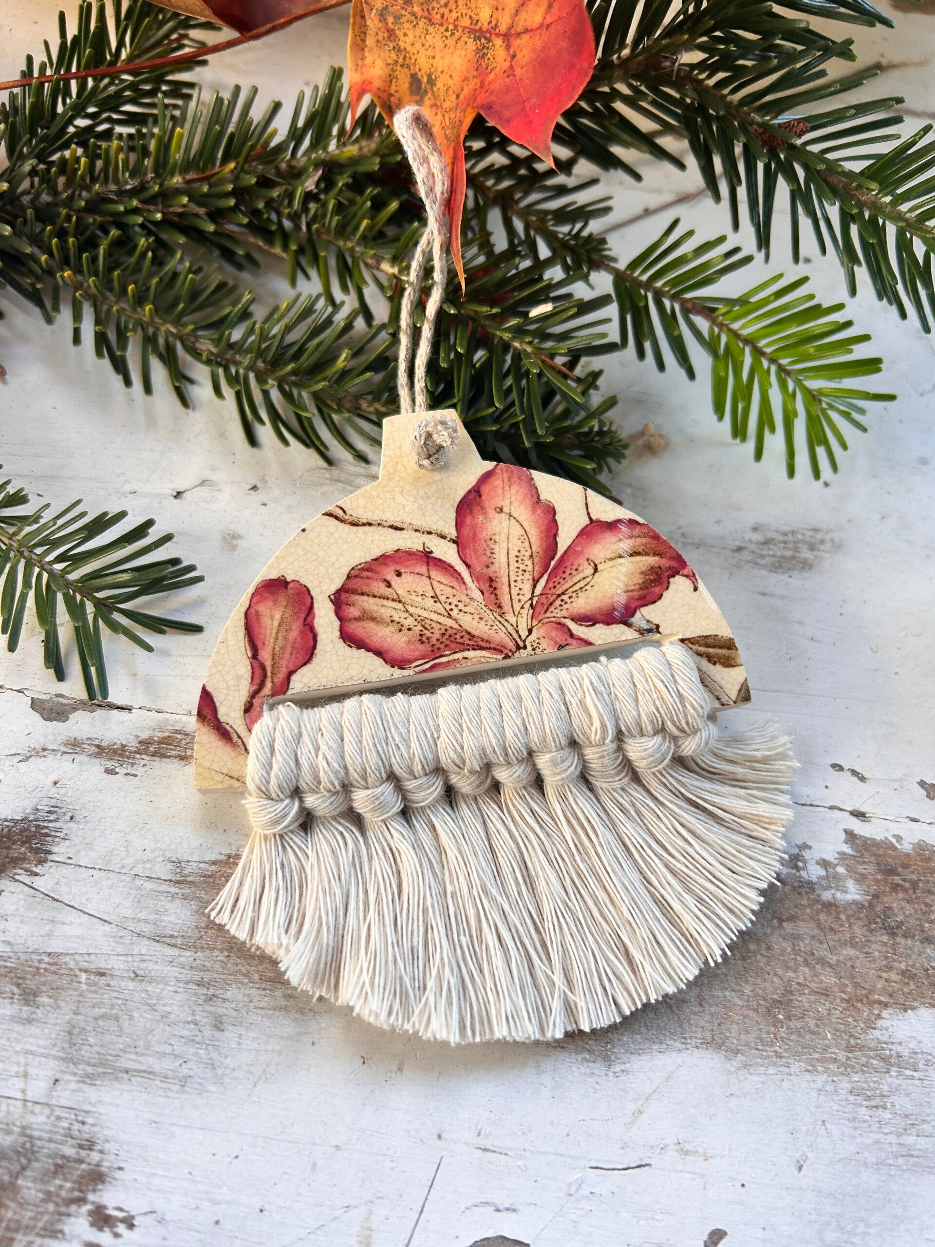 Une création poétique pour le sapin ou à suspendre en décoration murale — parfaite pour une ambiance de Noël naturelle et intemporelle.