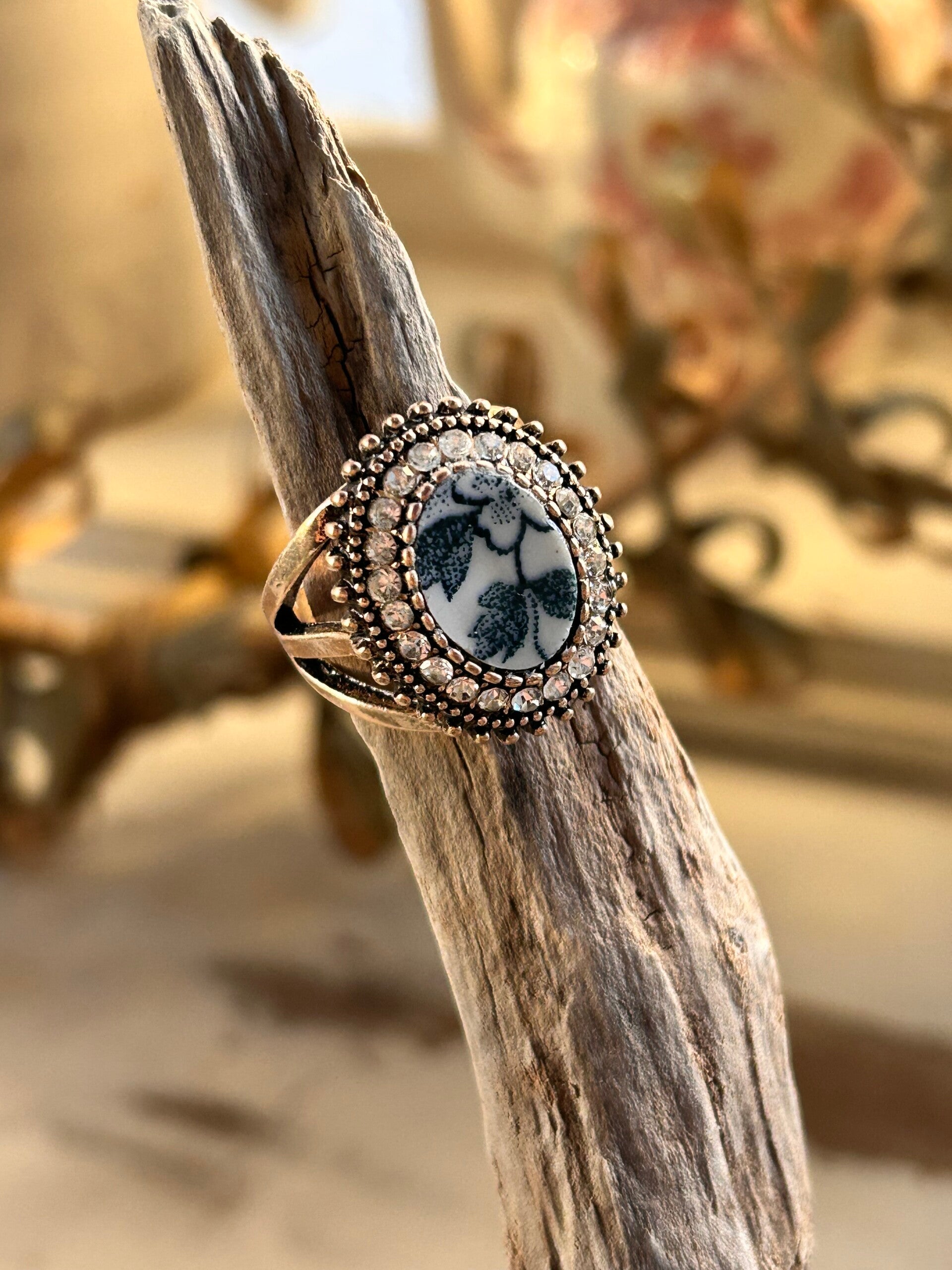 Cabocon taillé dans une assiette Saint Amand Marie Louise Entouré de strass