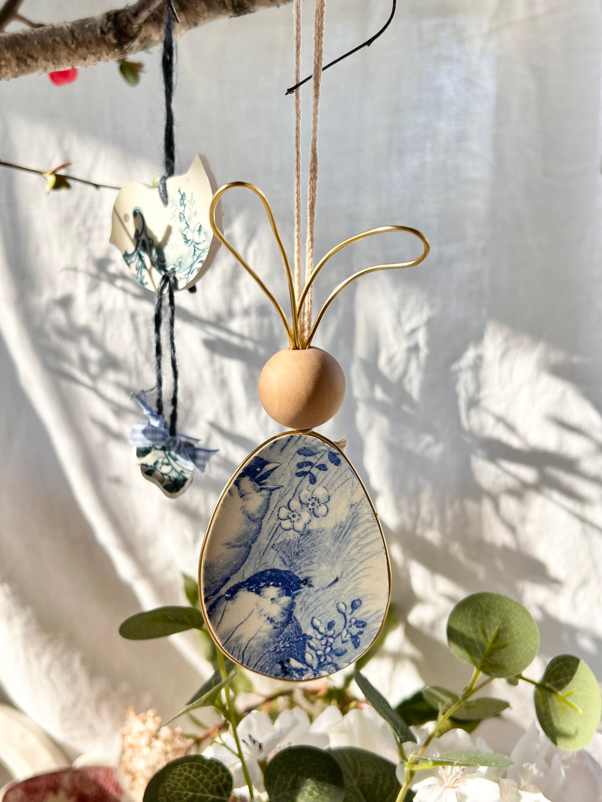 Lapin à suspendre taillé dans une assiette Jules Vieillard modèle Oiseaux