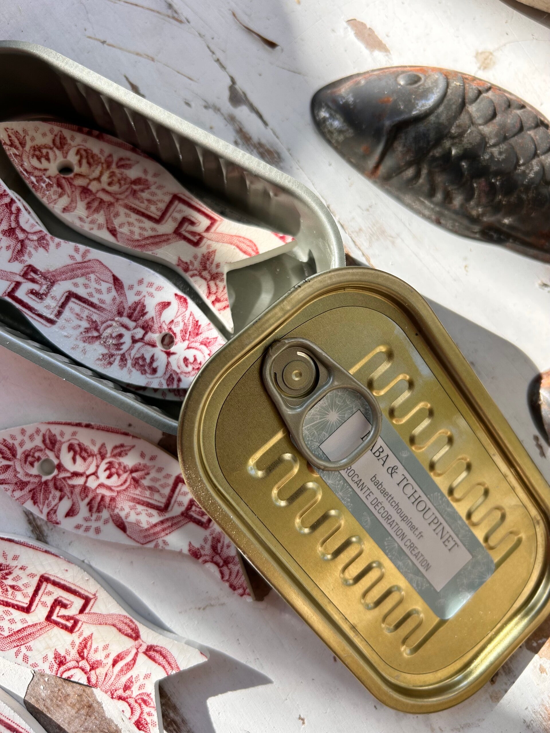 Une vraie boîte de sardines en métal… mais revisitée de façon poétique et unique.