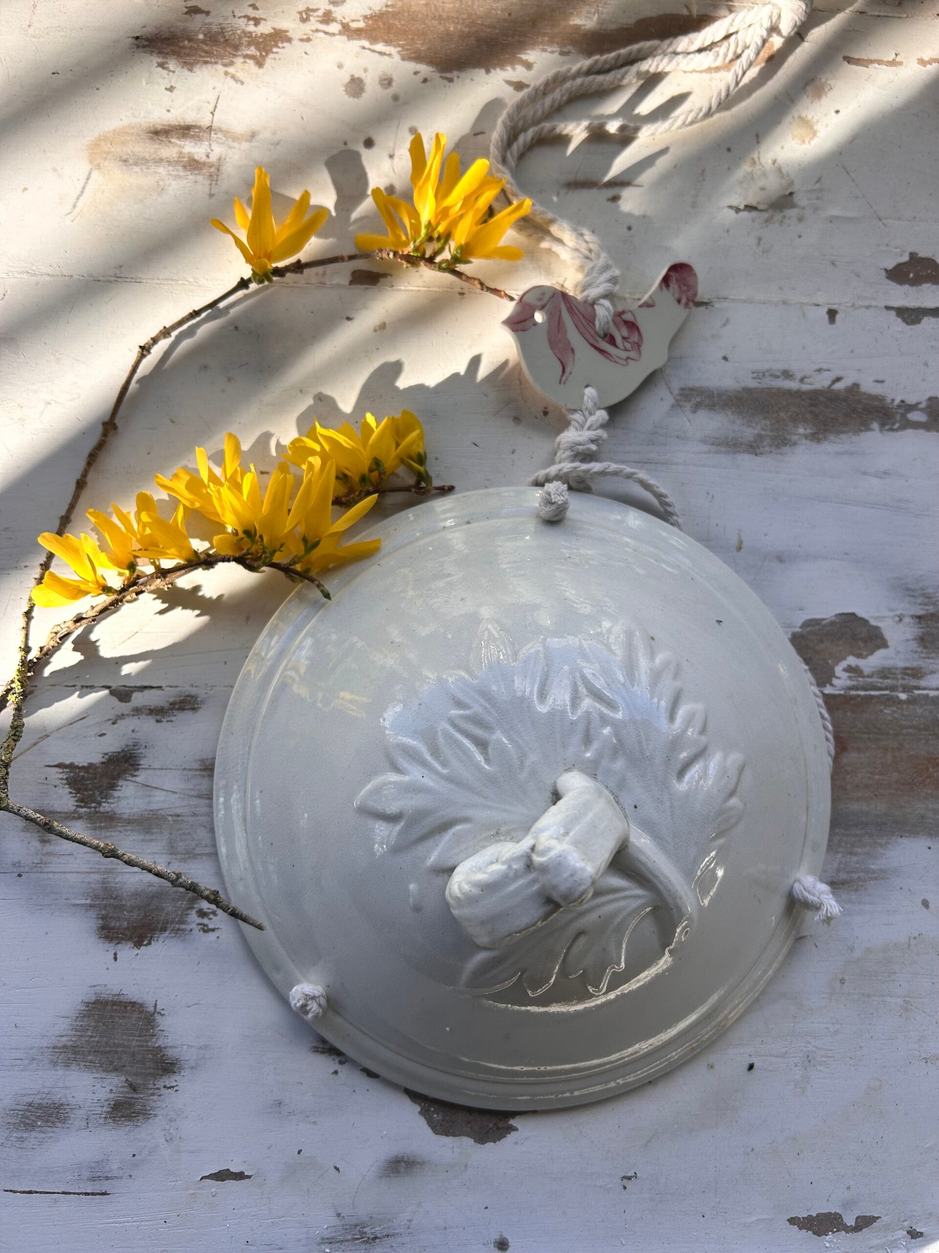• Décor : oiseau découpé dans une assiette ancienne